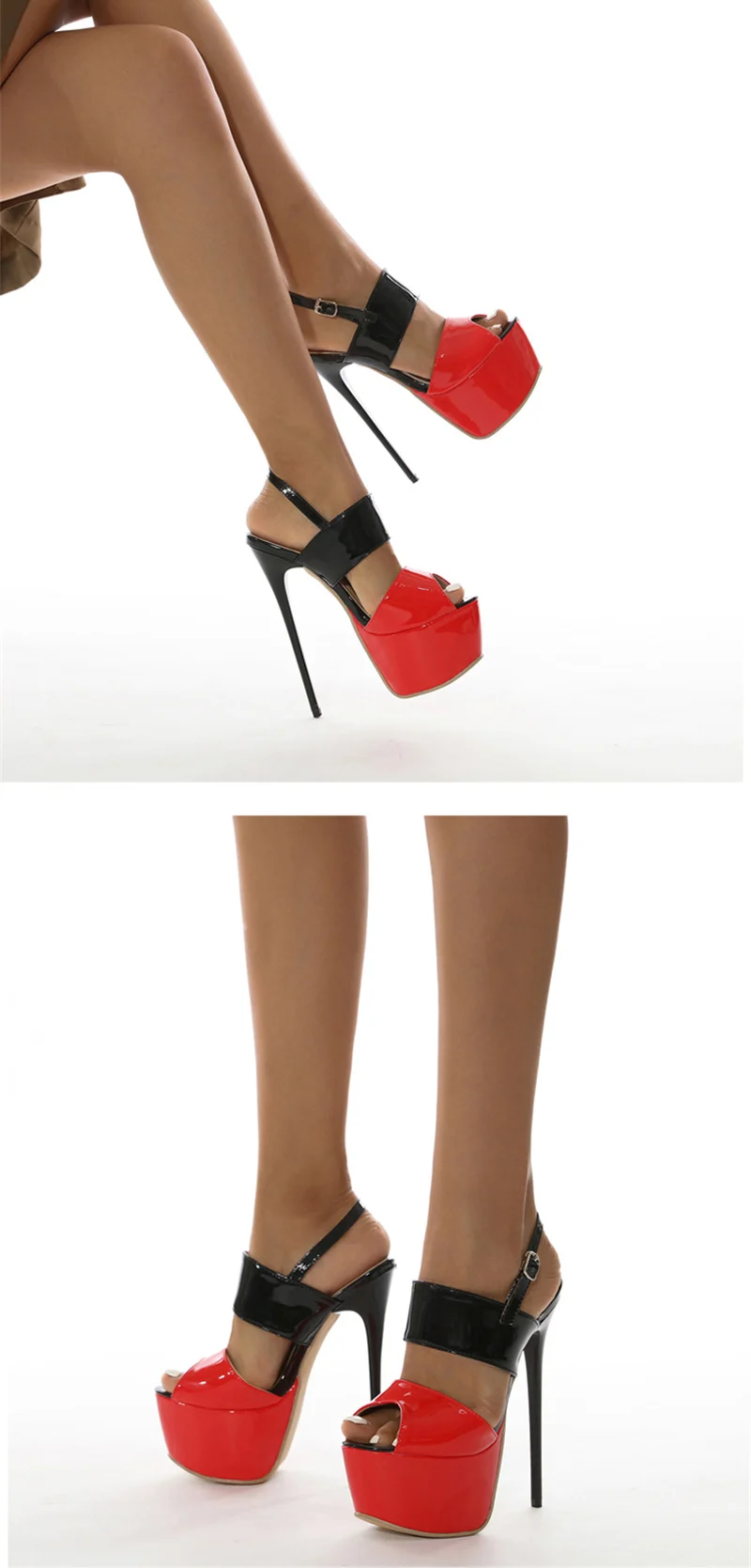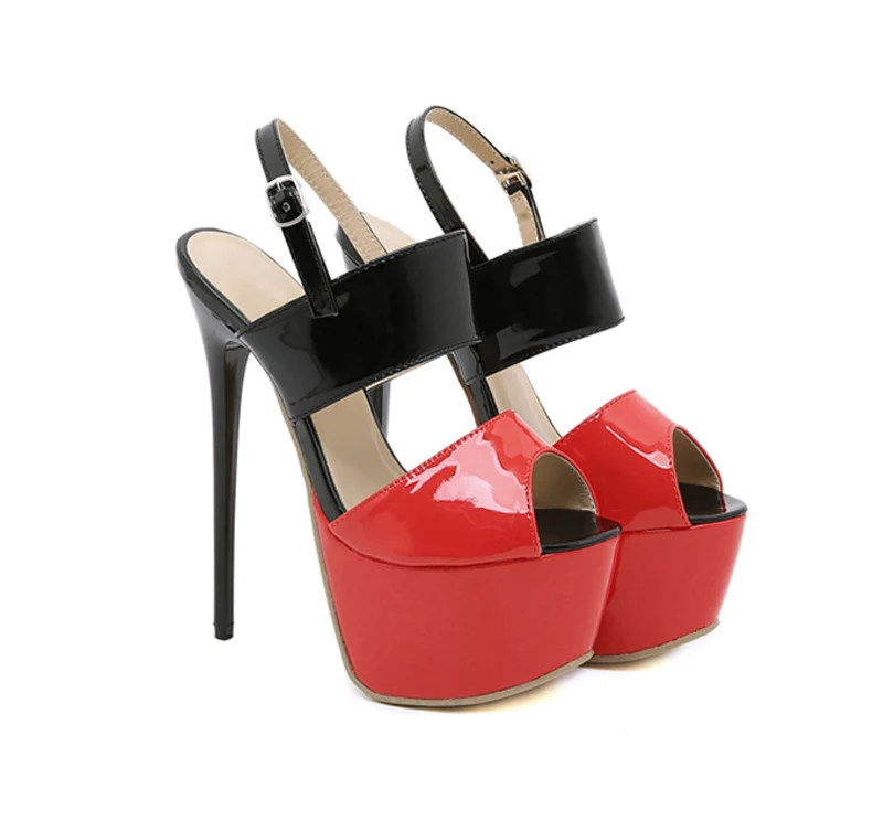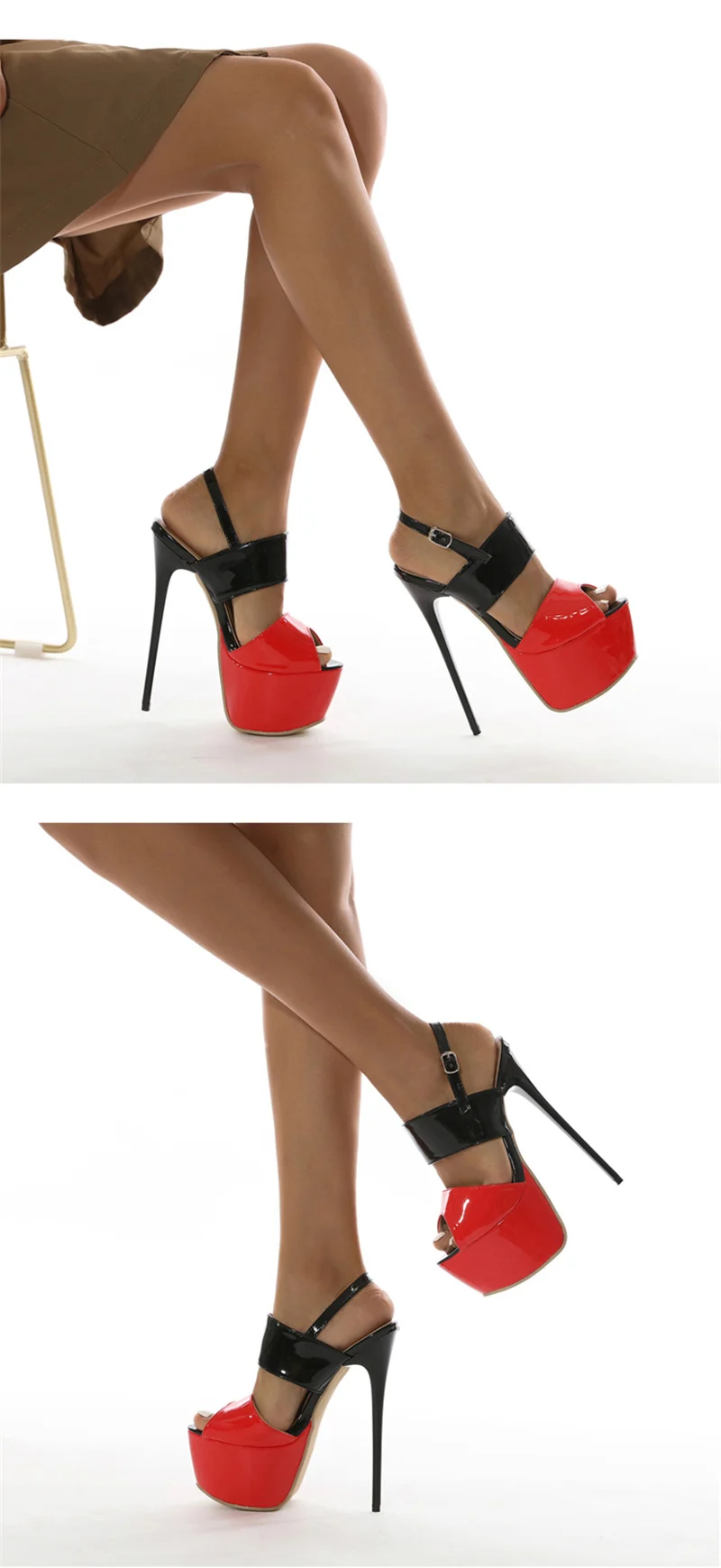 Summer Style Sexy 17cm Women Sandals High Heels Open Toe Buckles Nightclub Party Shoes Black Size 35-42