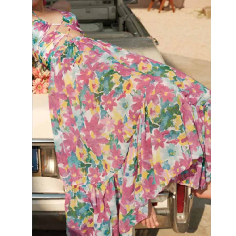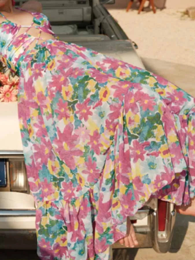Printed Cutouts Tie One Piece Swimsuit