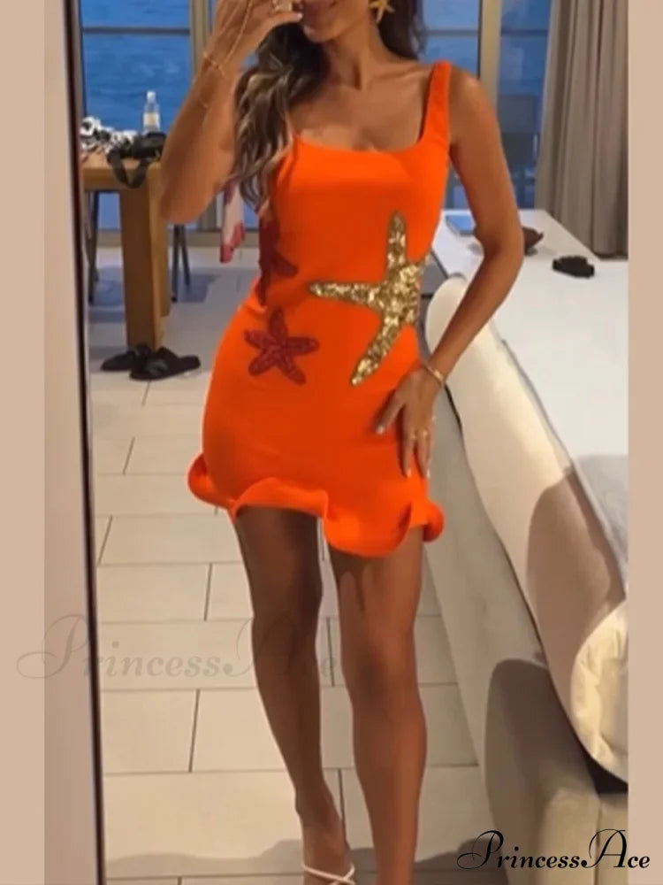 Sexy Mini Fashion Shiny Sequins Printed Strap Summer Chic Sleeveless Christmas Party Dress