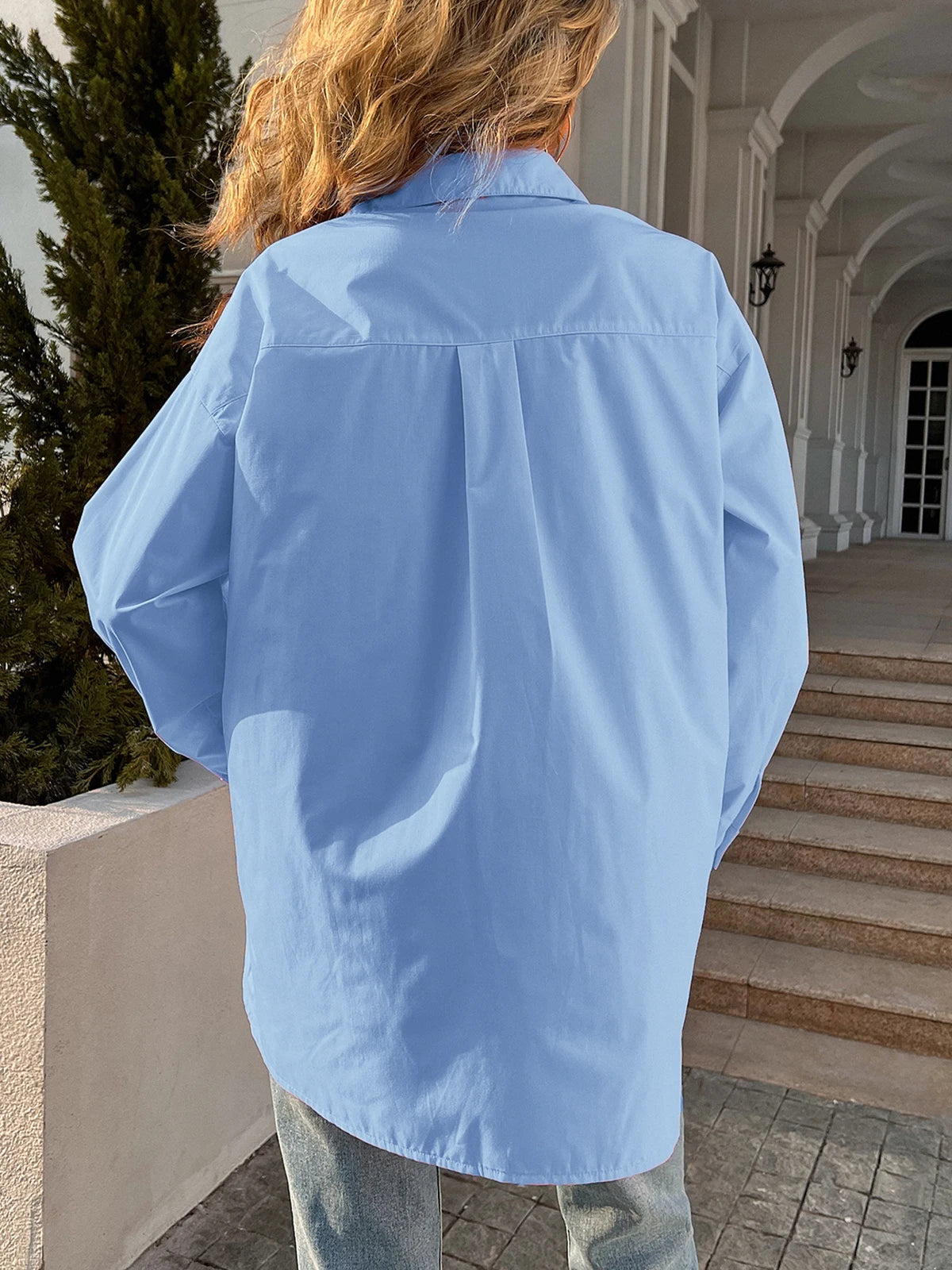 Button Down Casual Solid Collar Loose Bloshope