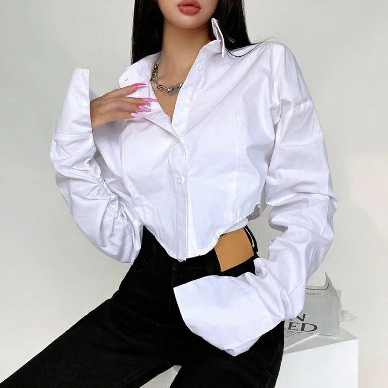 Casual Single Breasted Turn Down Collar Short Sleeve Bloshope