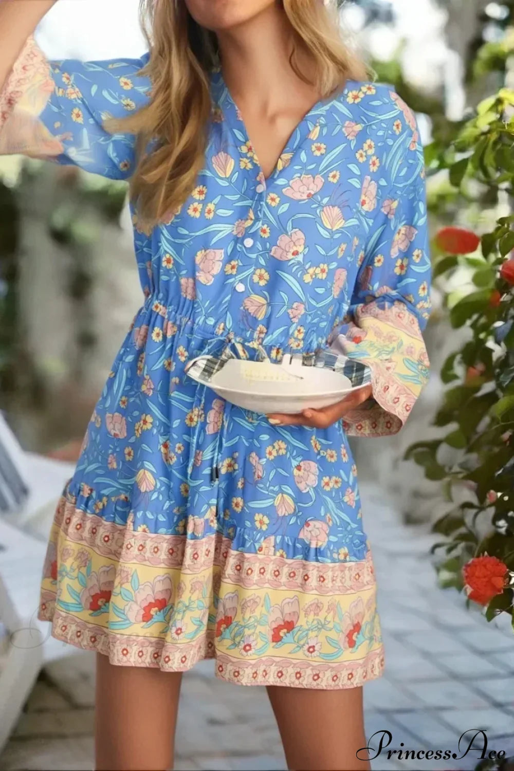 --Material : Cotton,Rayon --Color : blue --Available Size : S,M,L --Style : Boho |