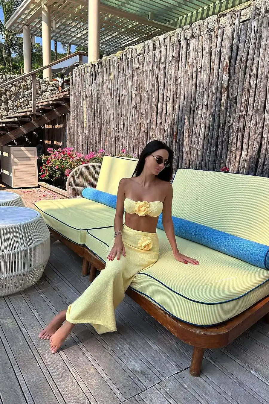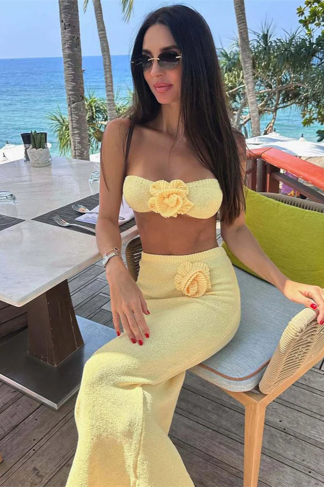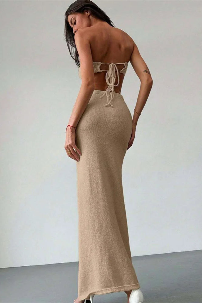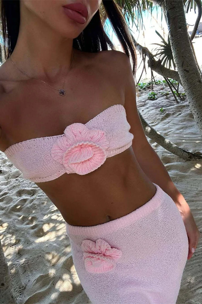 Knit Floral Patchwork Tube Top Boho Dress