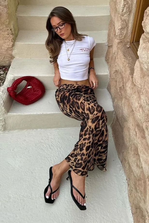Sexy Chiffon Leopard Mermaid Maxi Skirt