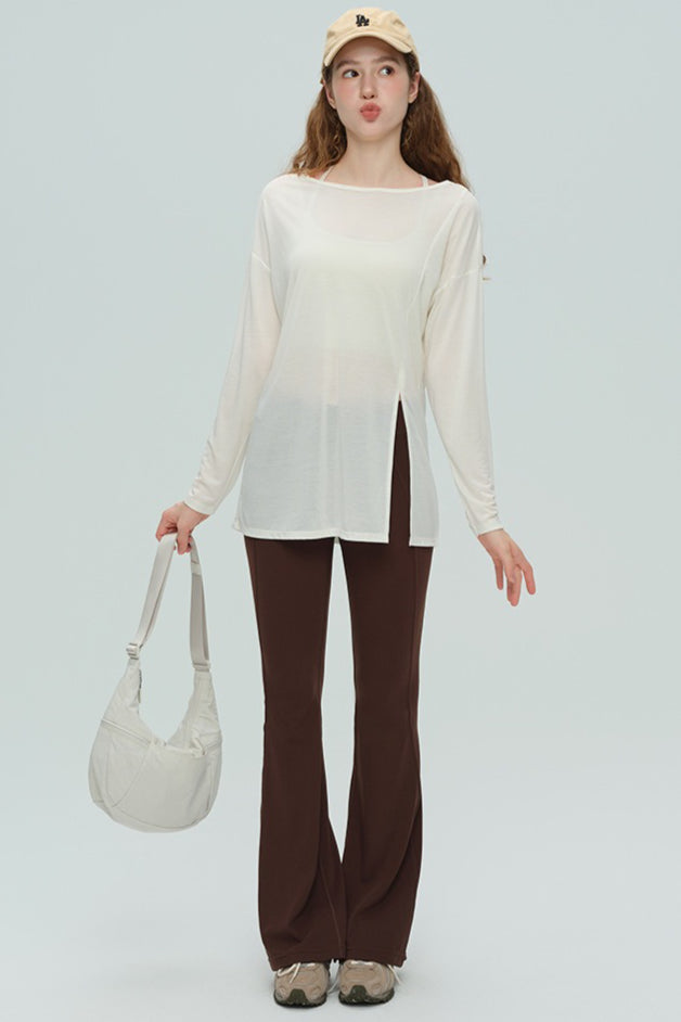 High-Waisted Breathable Flared Workout Slit Leggings