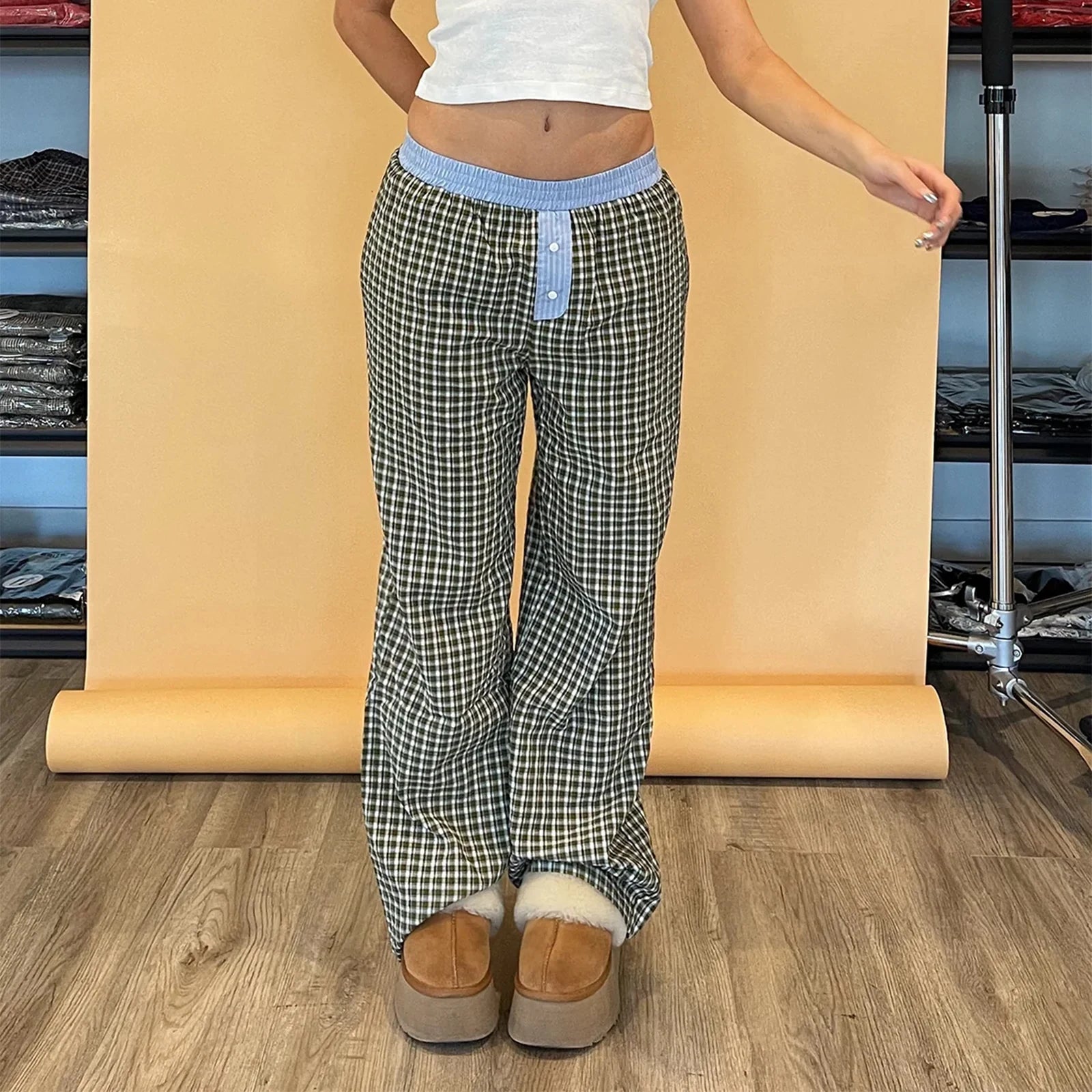 Plaid Sleep Lounge Bottoms Elastic Waist Pant