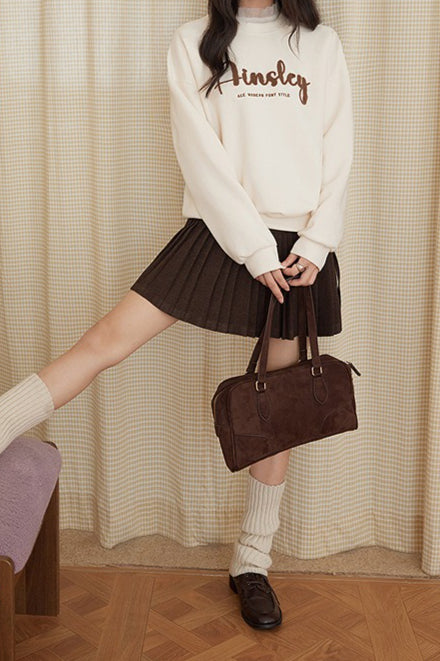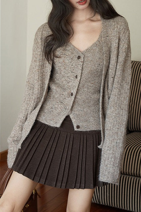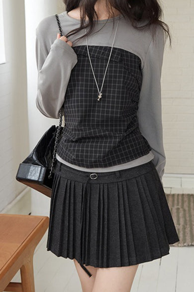Solid Wool Pleated High Waist Skirt
