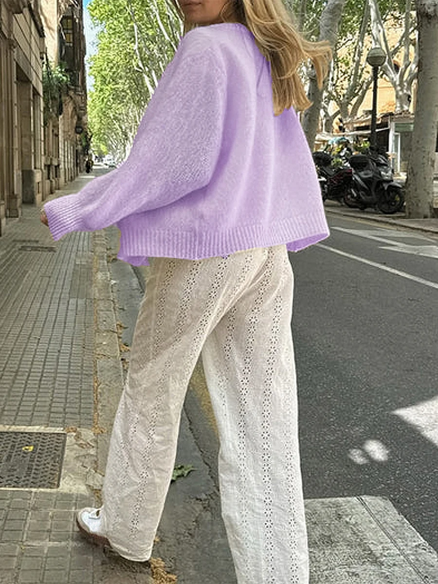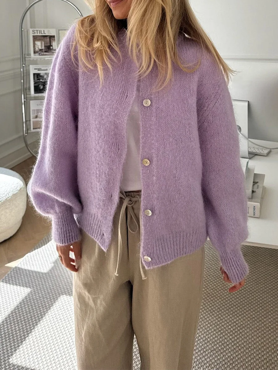 Women's Solid Color Cardigan Fuzzy Long Sleeve Button Down Sweater Soft Knit Tops Outerwear