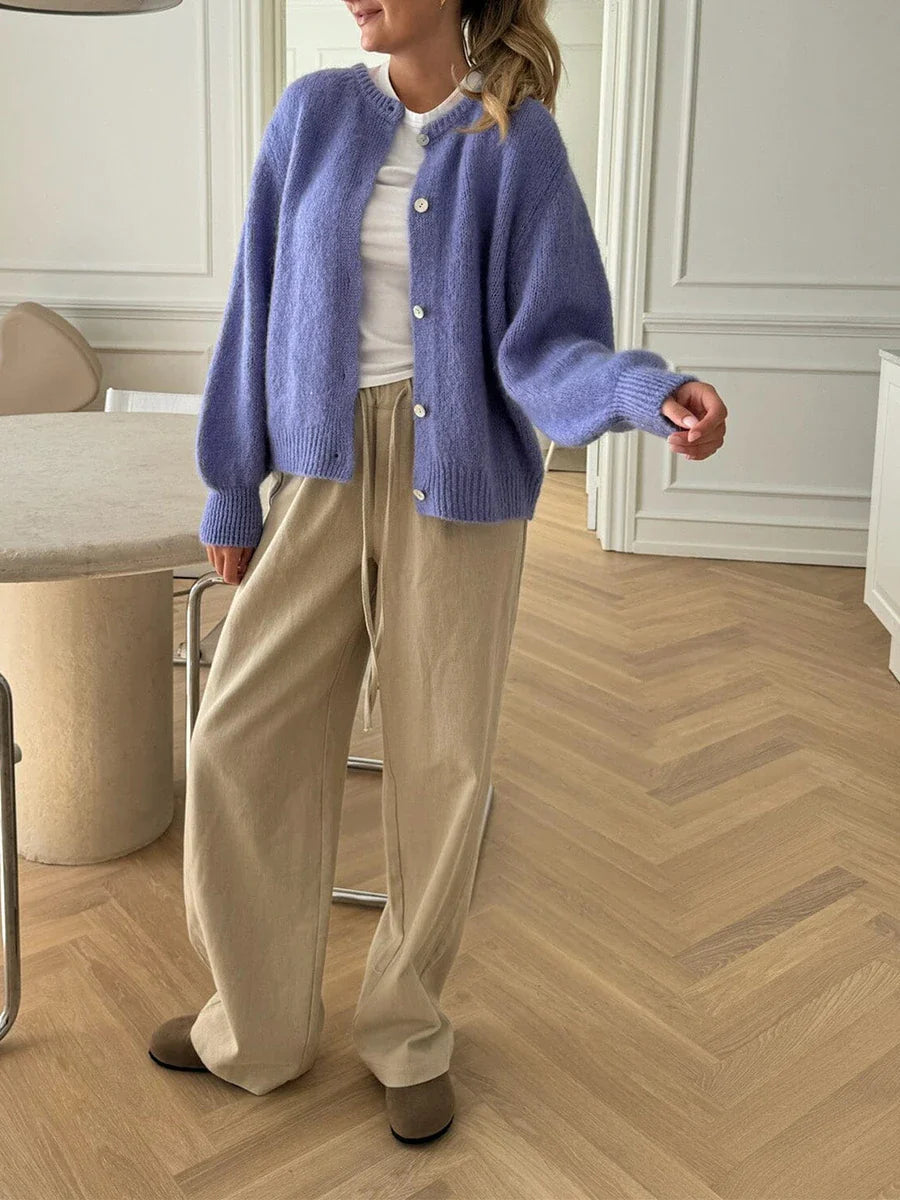 Solid Fuzzy Button Down Knit Cardigan