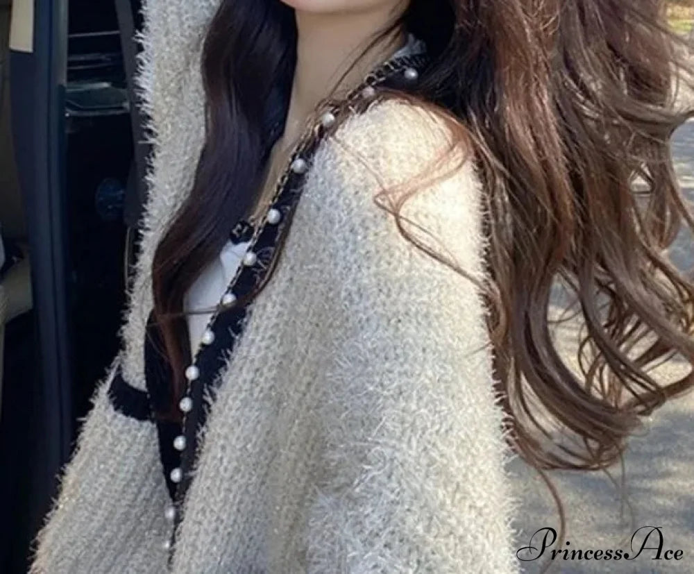 V-neck Fleece Thick Knitting Cardigan