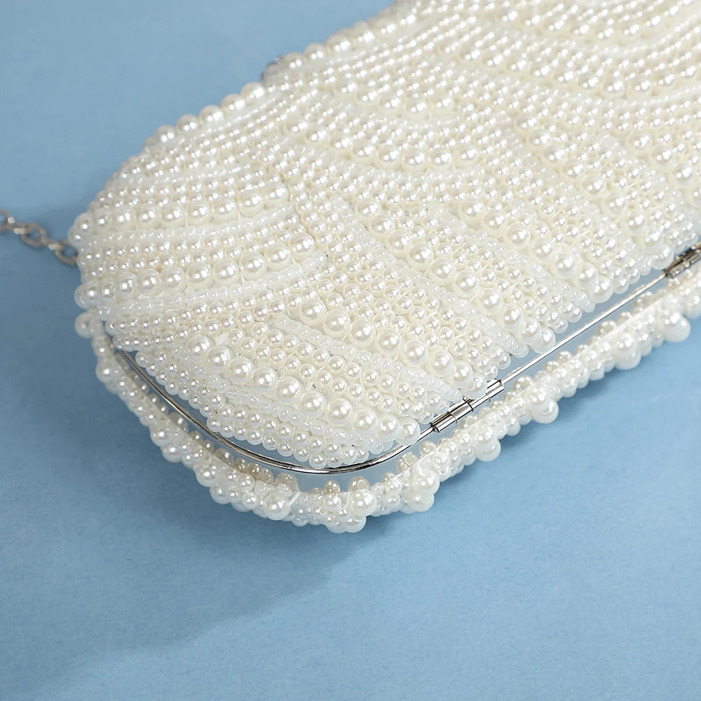 Retro Luxurioshop Pearl Wave Style Evening Clutch Bag