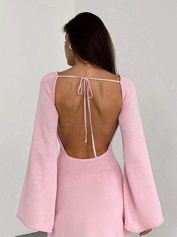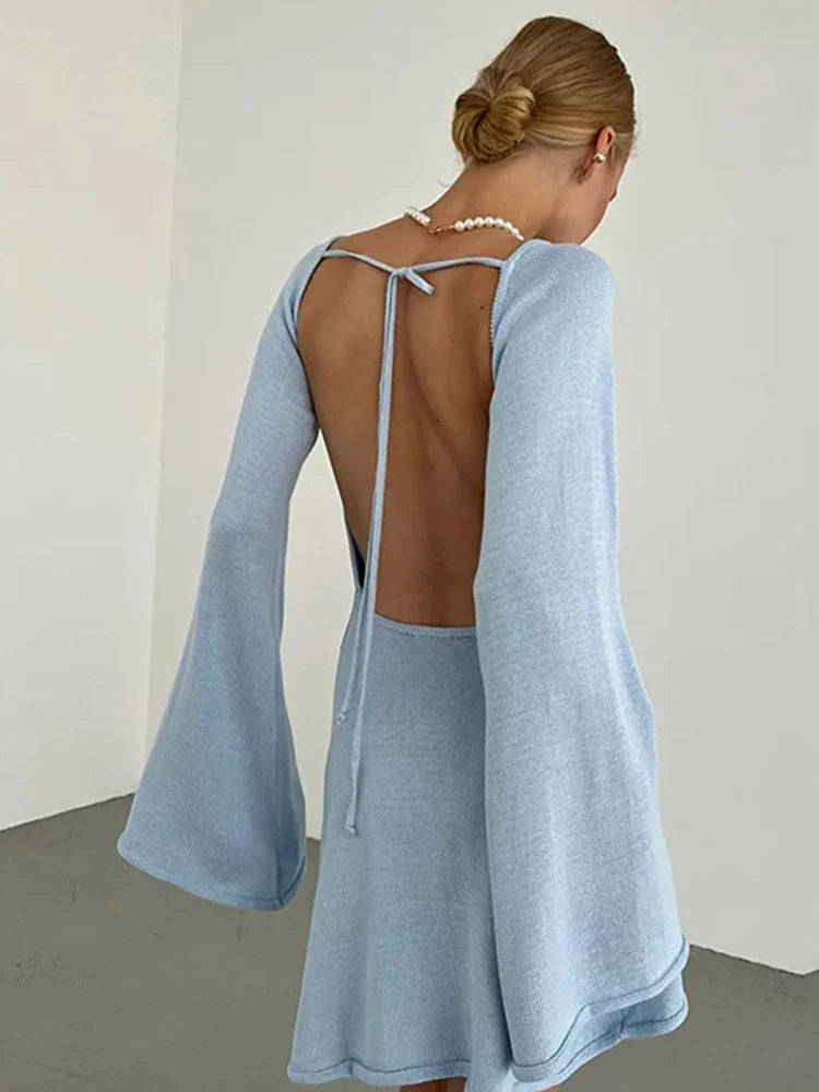 Knitted Backless Lace Up Bikini Cover Up