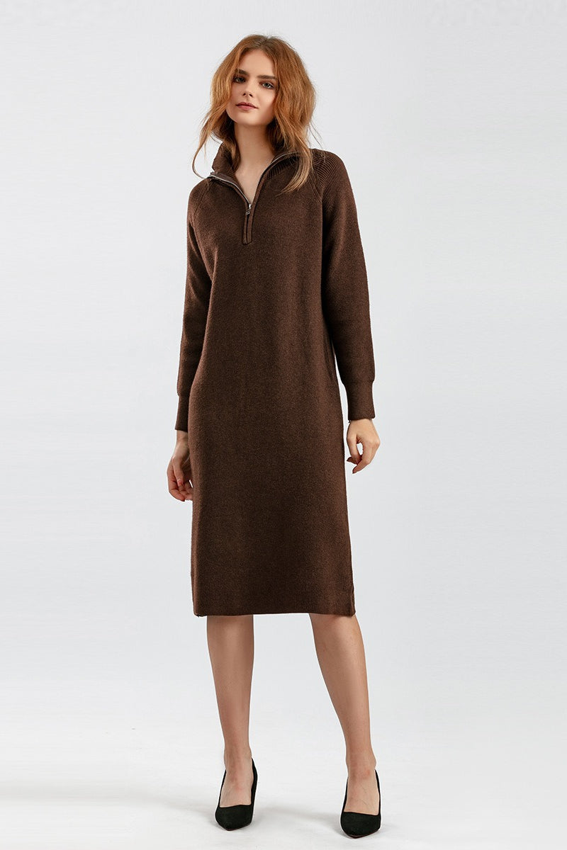 Zipper Pullover Sweater Dress