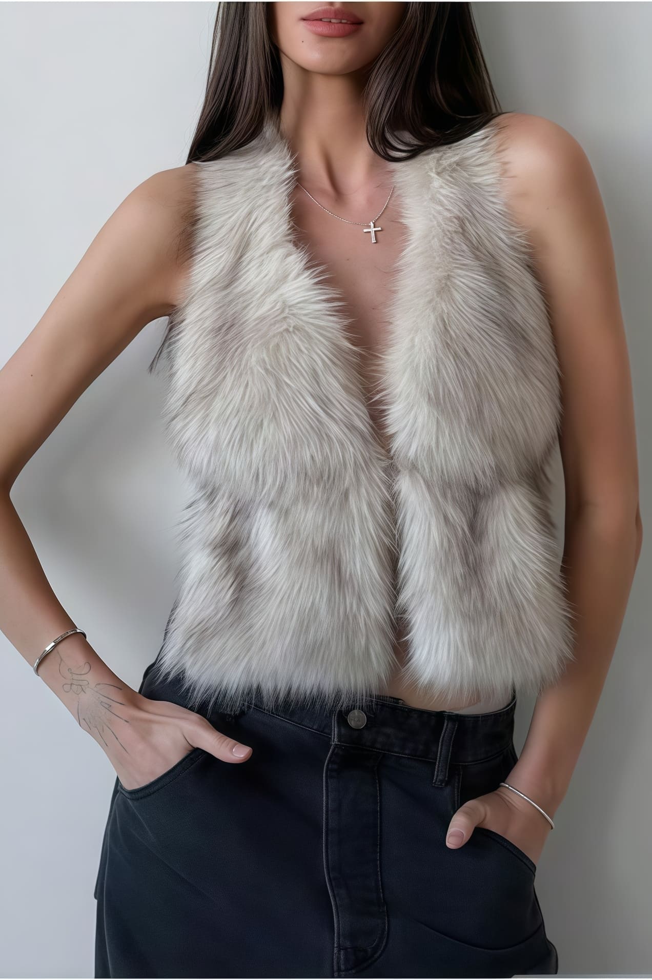 Faux Fur Fox Hair Zipper Sleeveless Vest