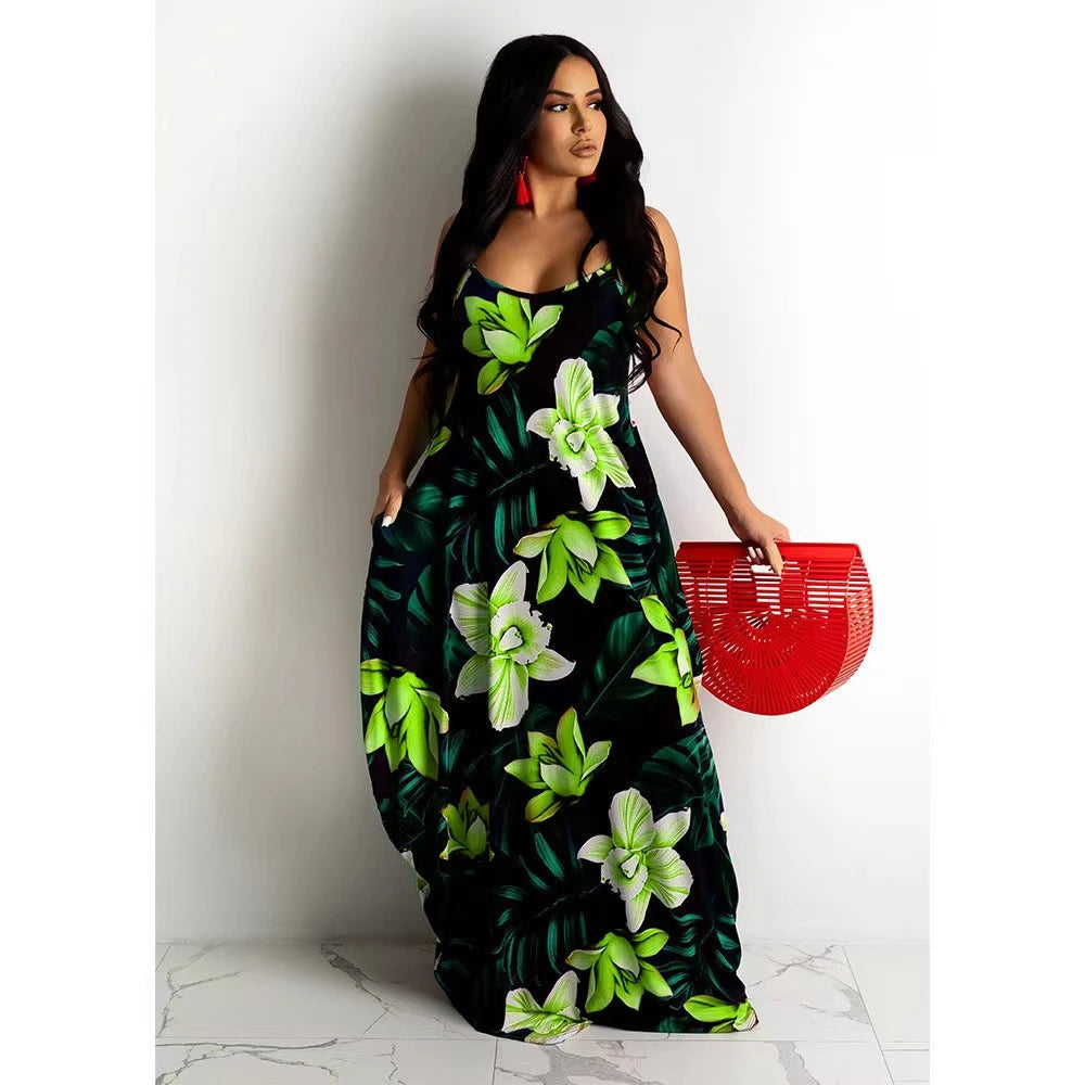 Loose Floral Print Slip Dress Long Skirt Floral Dress