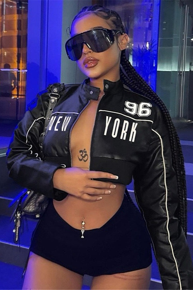 Letter Print Biker Jacket