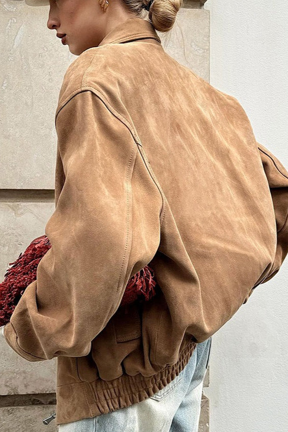 Retro Faux Suede Collared Jacket
