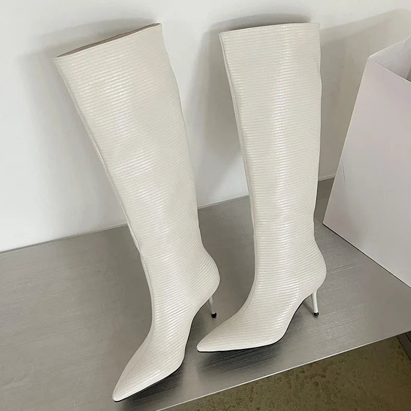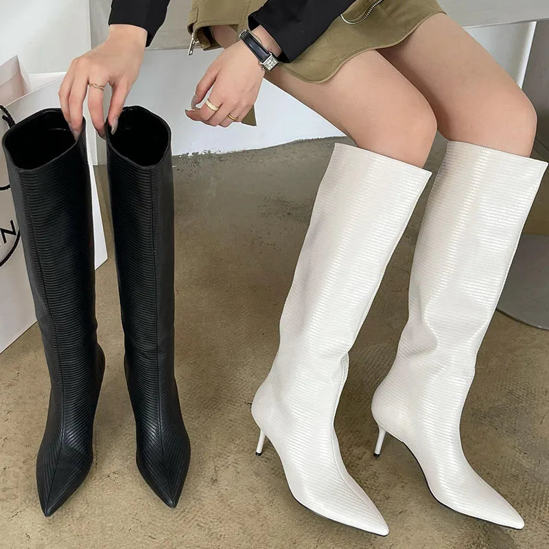 Fashion Pointed Designer Modern Party Western Long Thin Low Heel Knee High Boot
