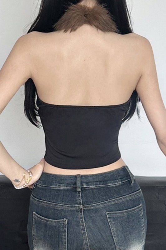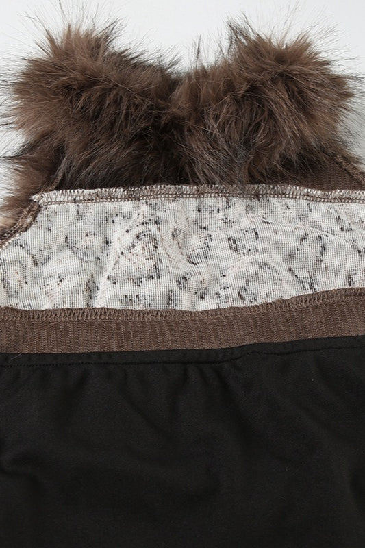 • Details: Backless, Faux Fur Trim