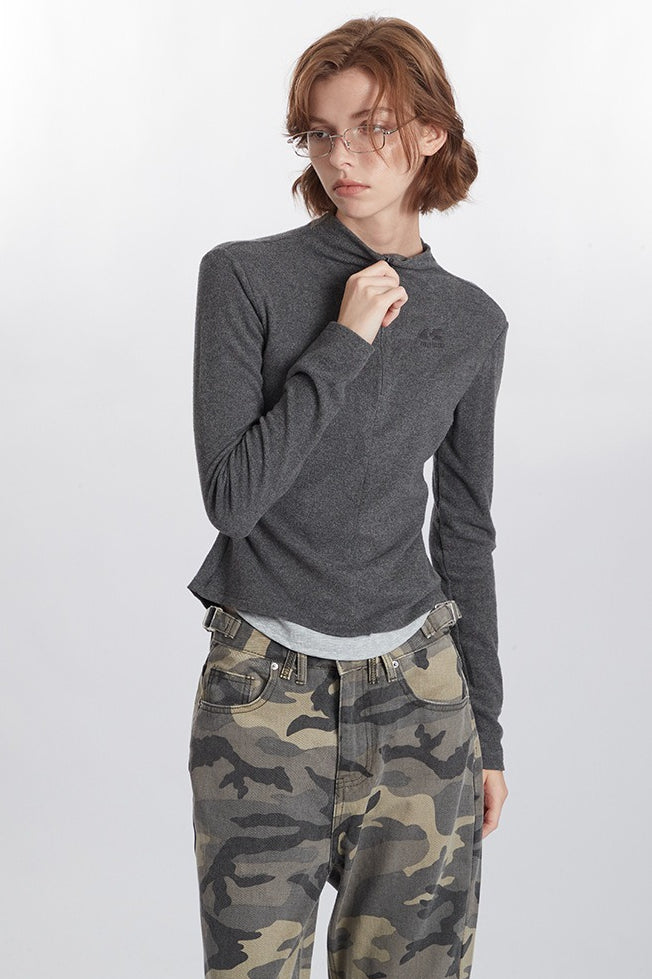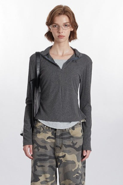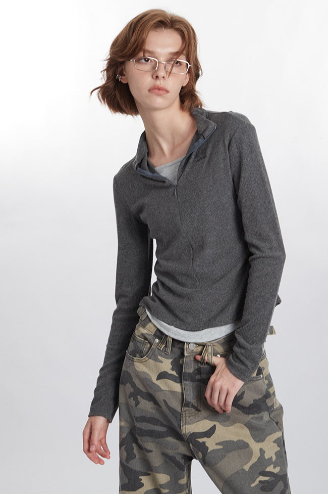 Mock Two-Piece Half-Zip Knit Top