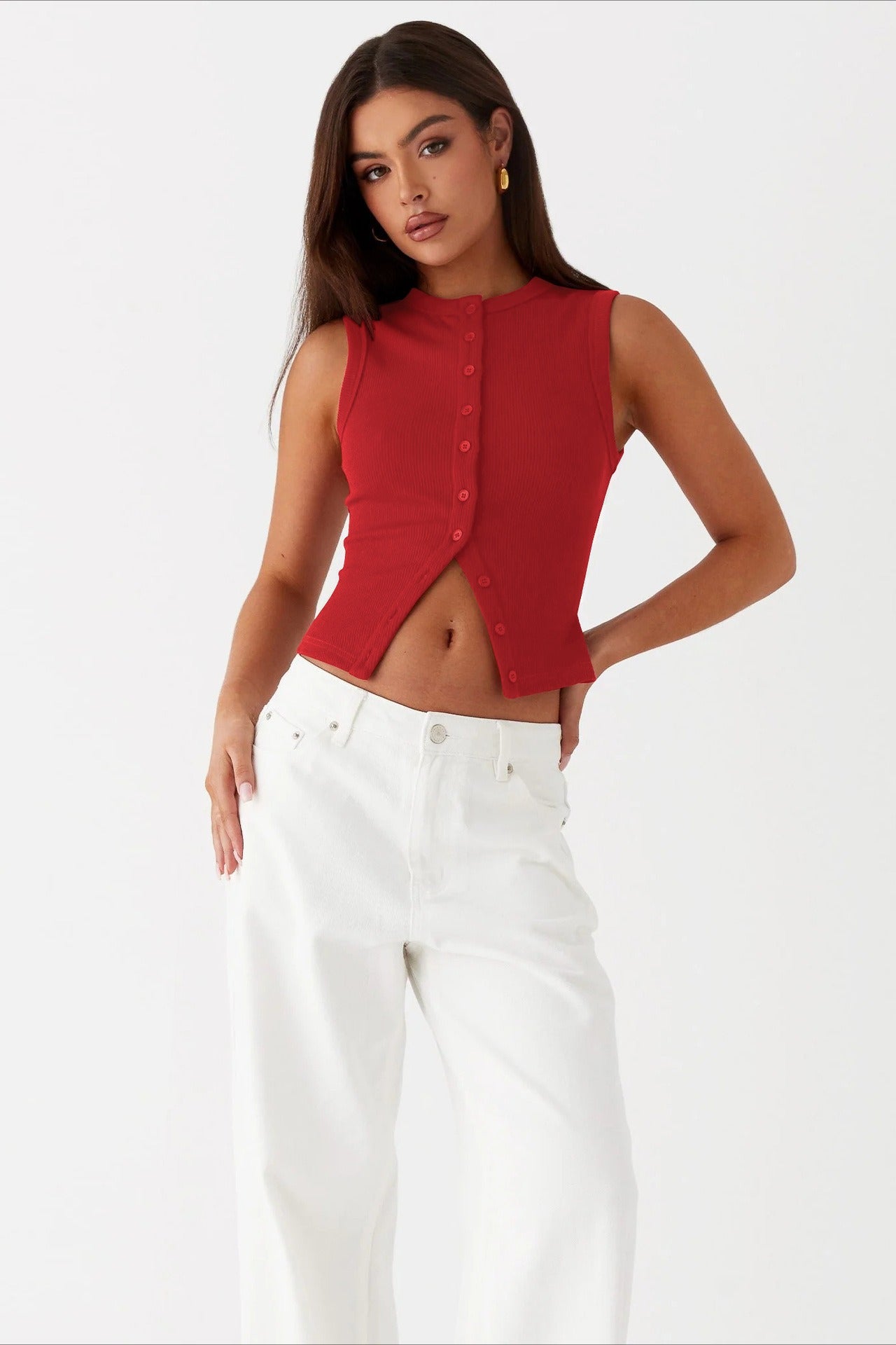 Round Neck Sleeveless Knit Top
