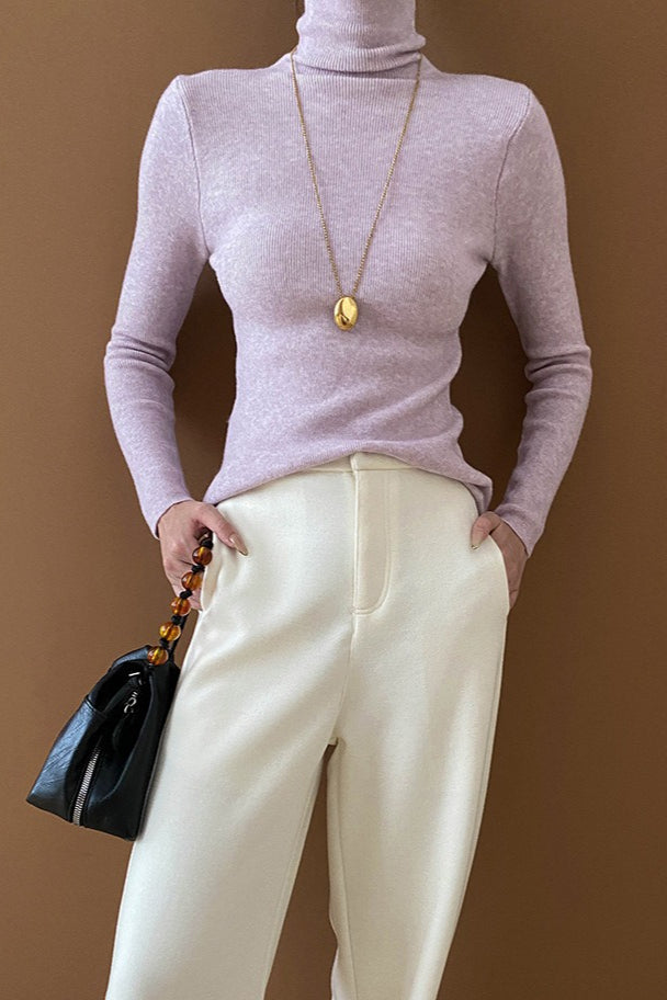 Stacked Neck Slim Fit Essential Knit Top
