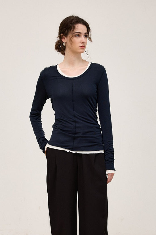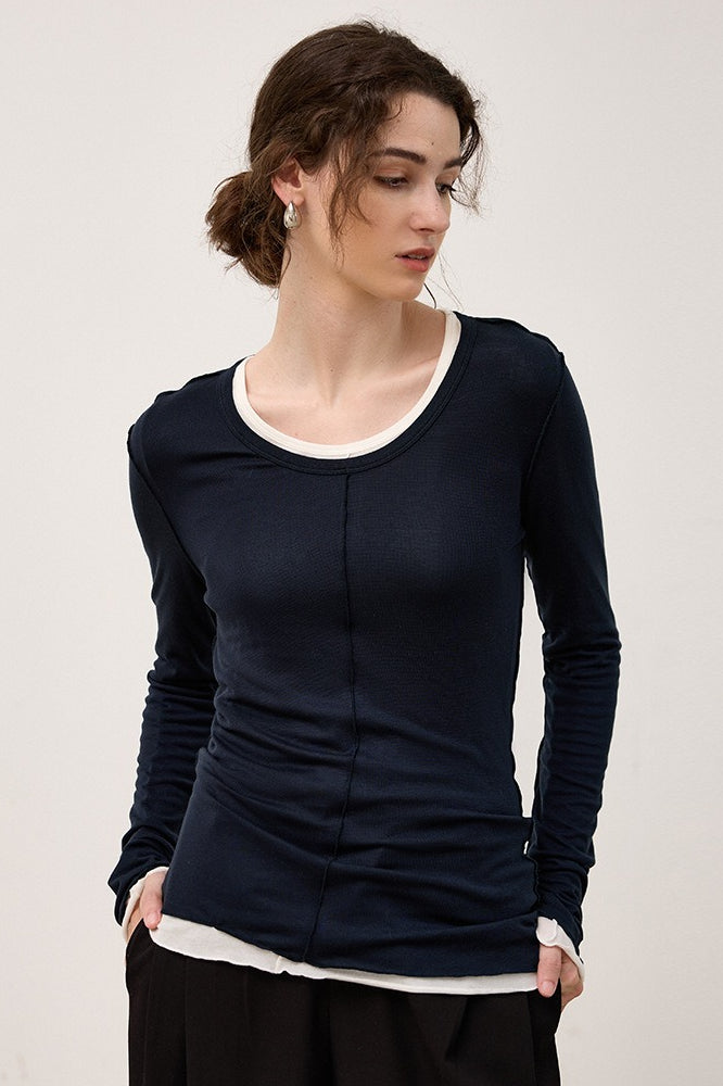Tencel Wool Blend Round Neck Knit Top