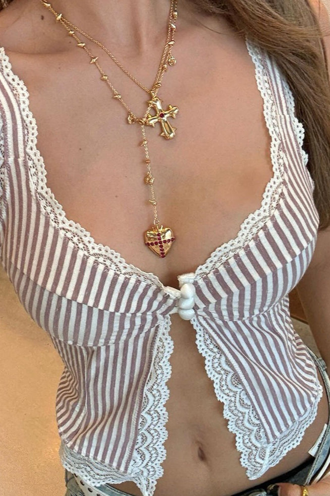 Sexy Ruffled Stripe Lace Tank Top