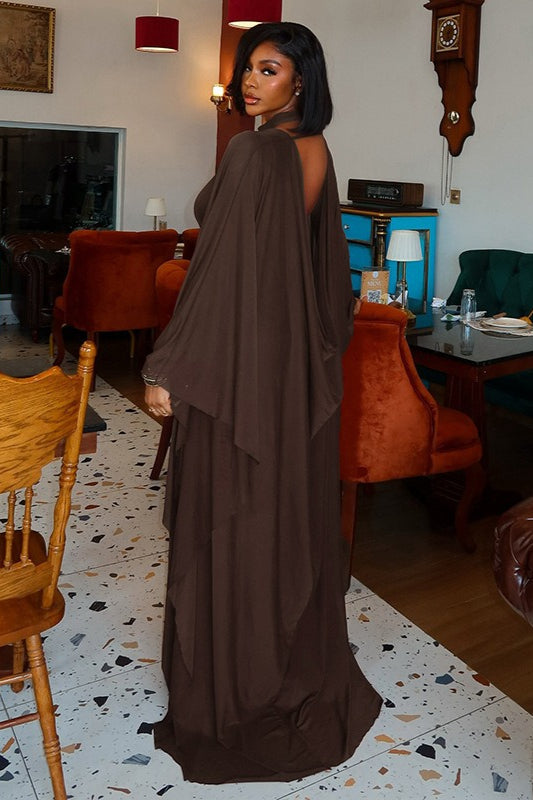 Elegant Backless Sash Sheer Shawl Two Piece Set