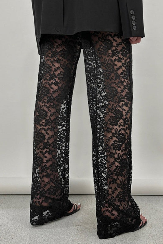 Lace Cutout Paneled High-Rise Straight Pants