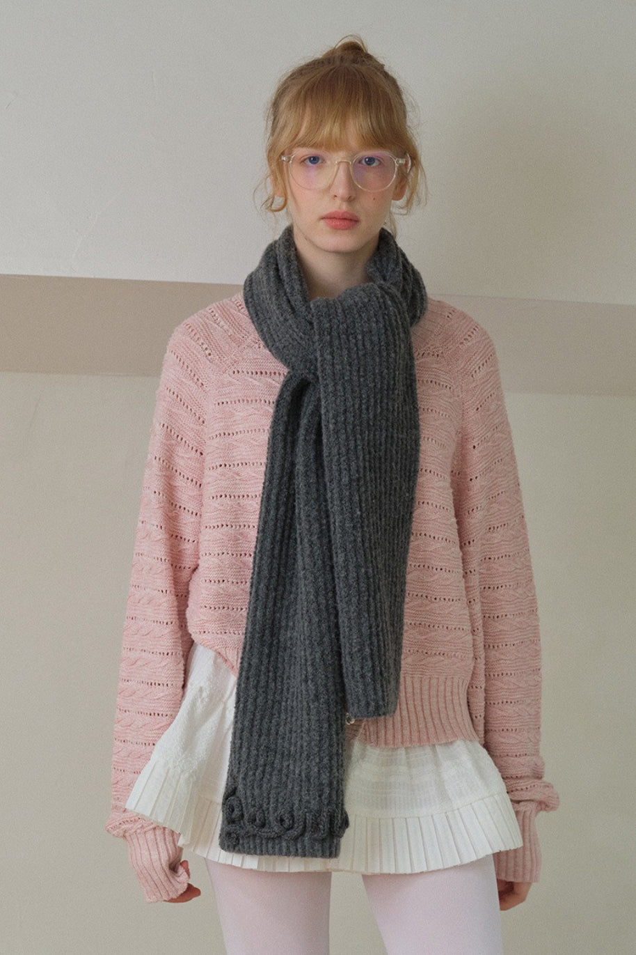 Wool Blend 3D Hand-Crocheted Letter Solid Scarf