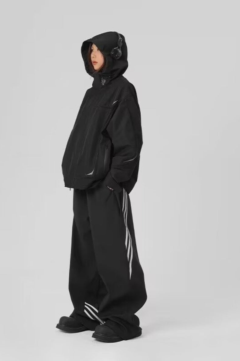 Striped Drapey Straight Wide Leg Athletic Pants