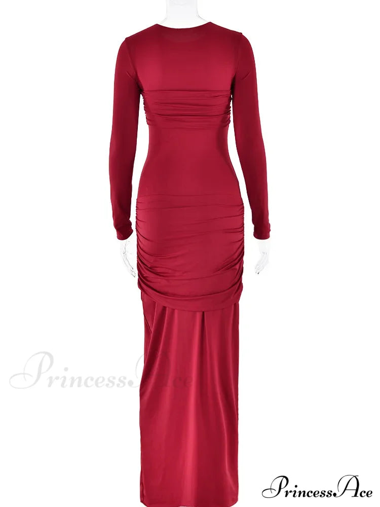 Fashion O-neck Long Sleeve High Waist Bodycon Red Christmas Party Dress