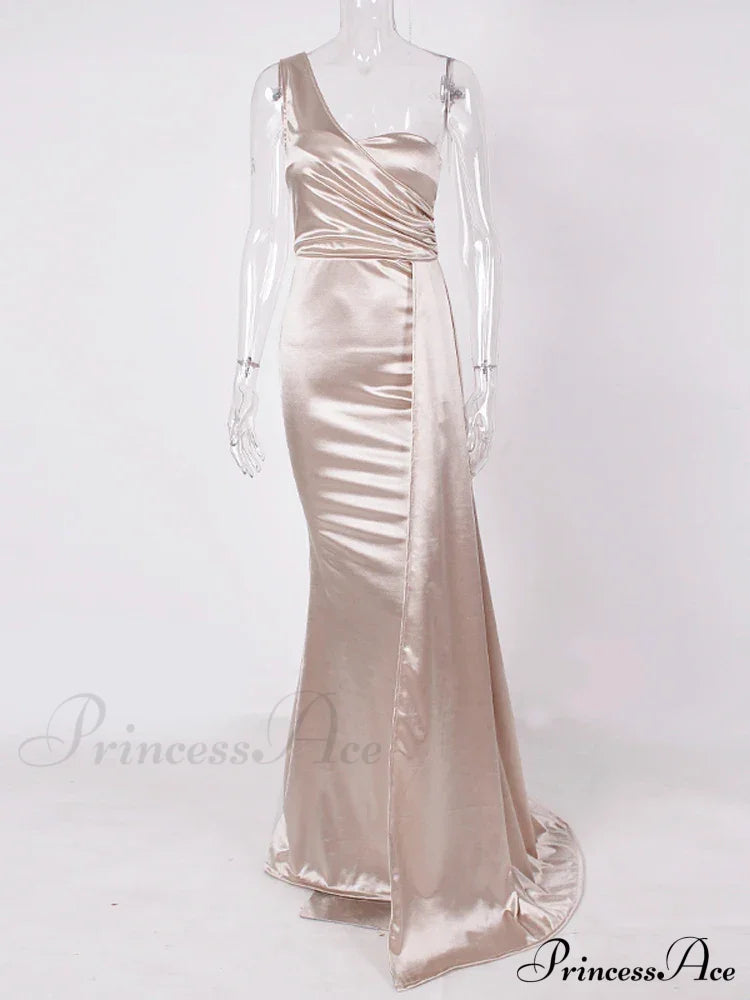 One-Shoulder Ruched Satin Party Dress
