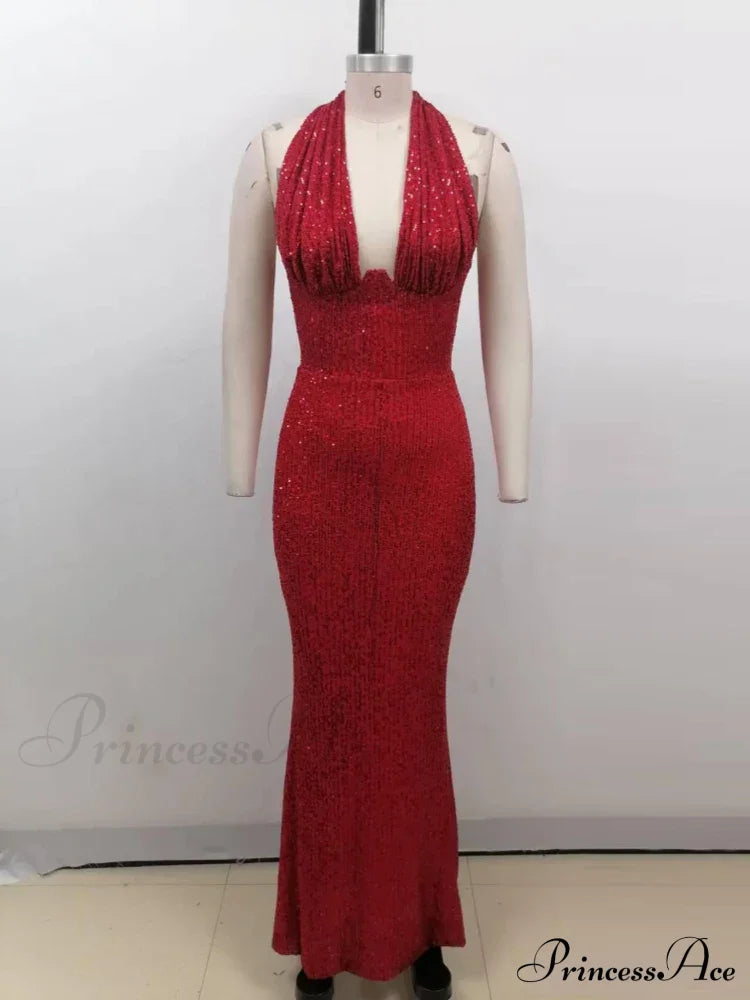 Sexy Halter Deep V Neck Sequins Green Sleeveless Backless Celebrity Christmas Party Dress