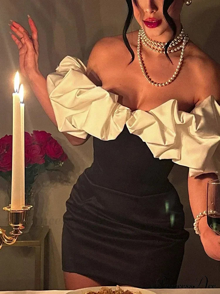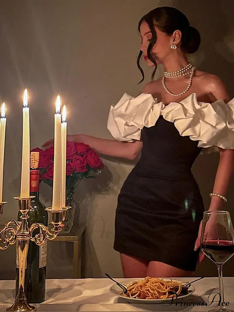Women Sweet Fishbone Ruffled Neck Spliced Mini Sexy Backless Christmas Party Dress