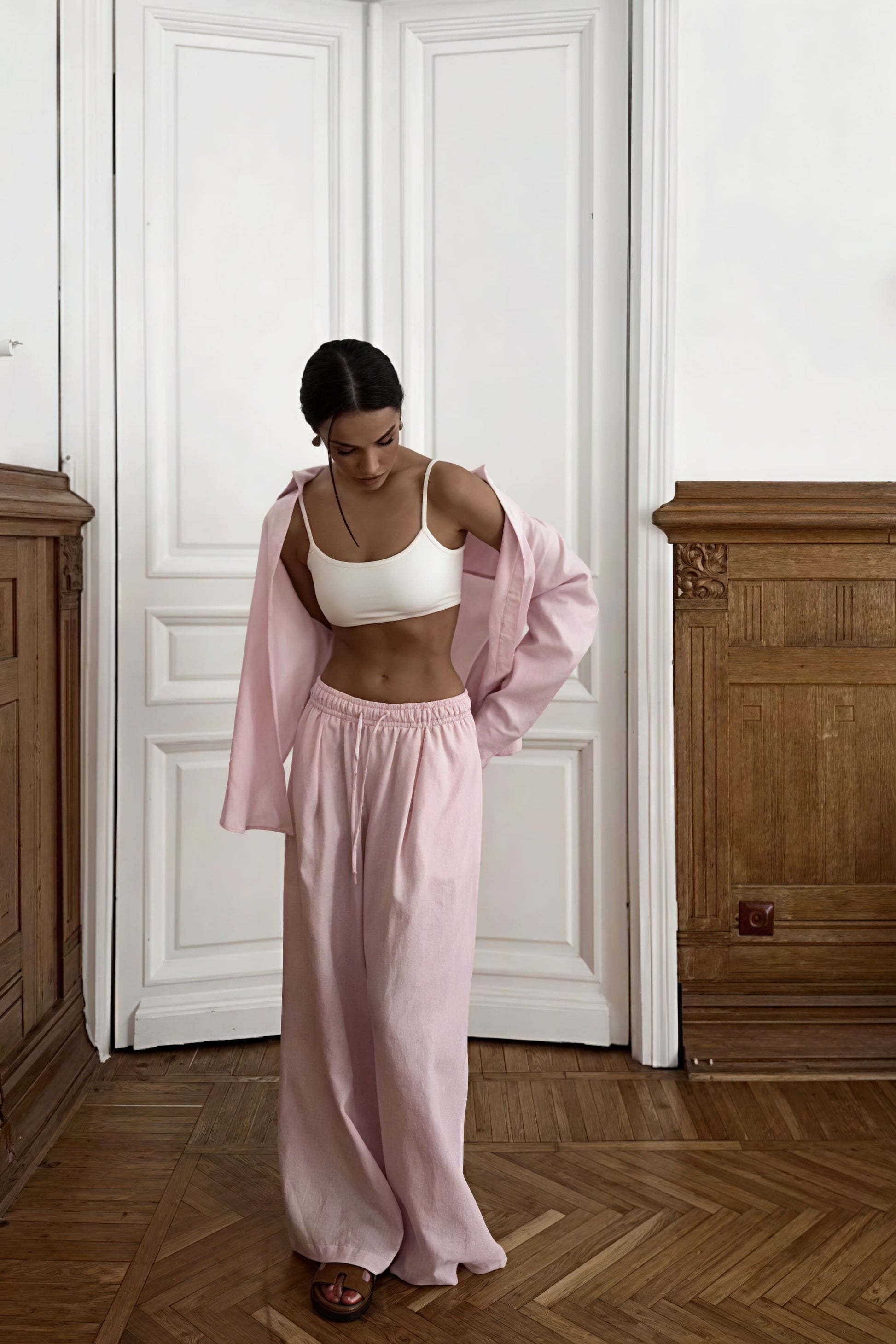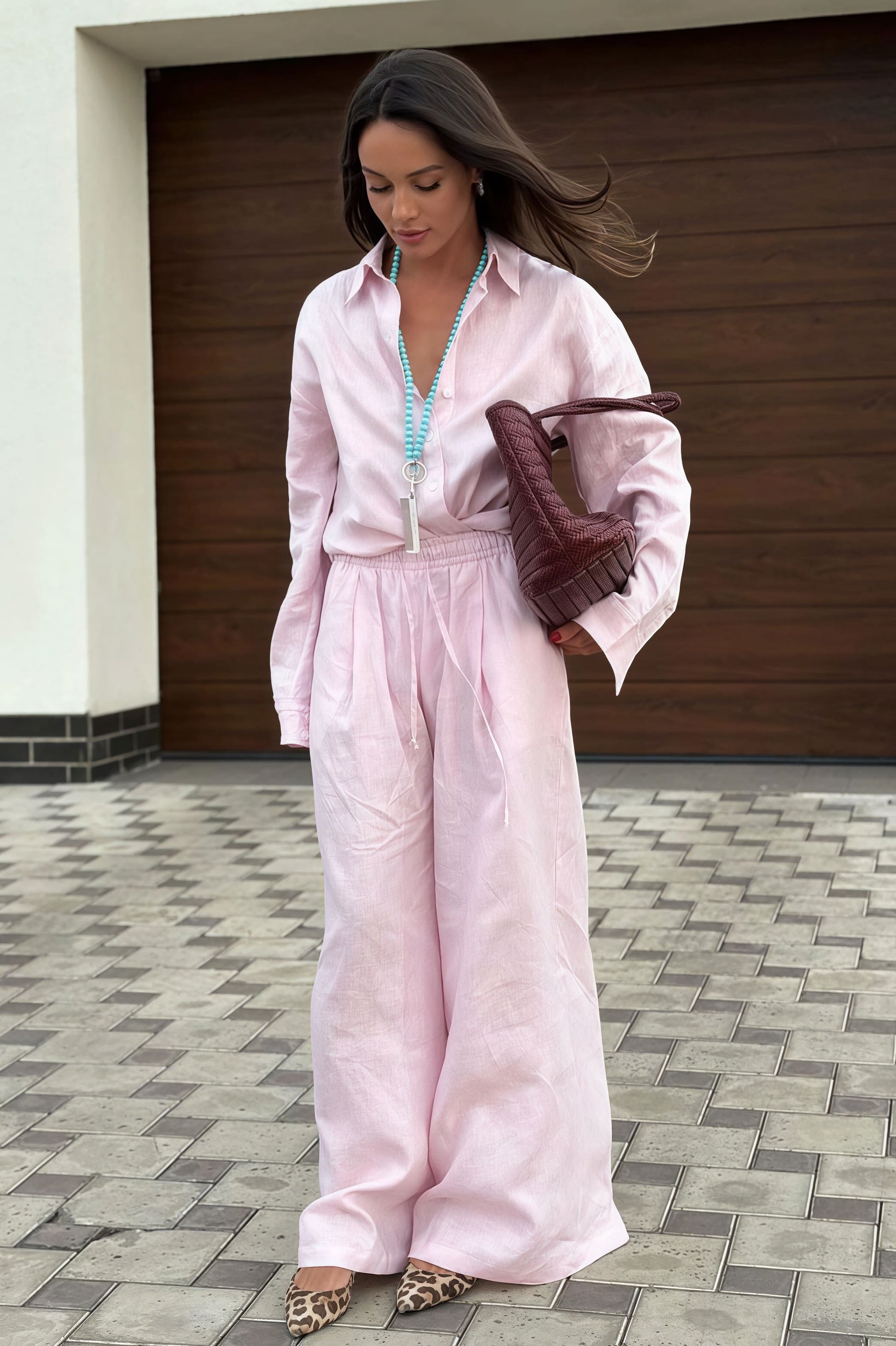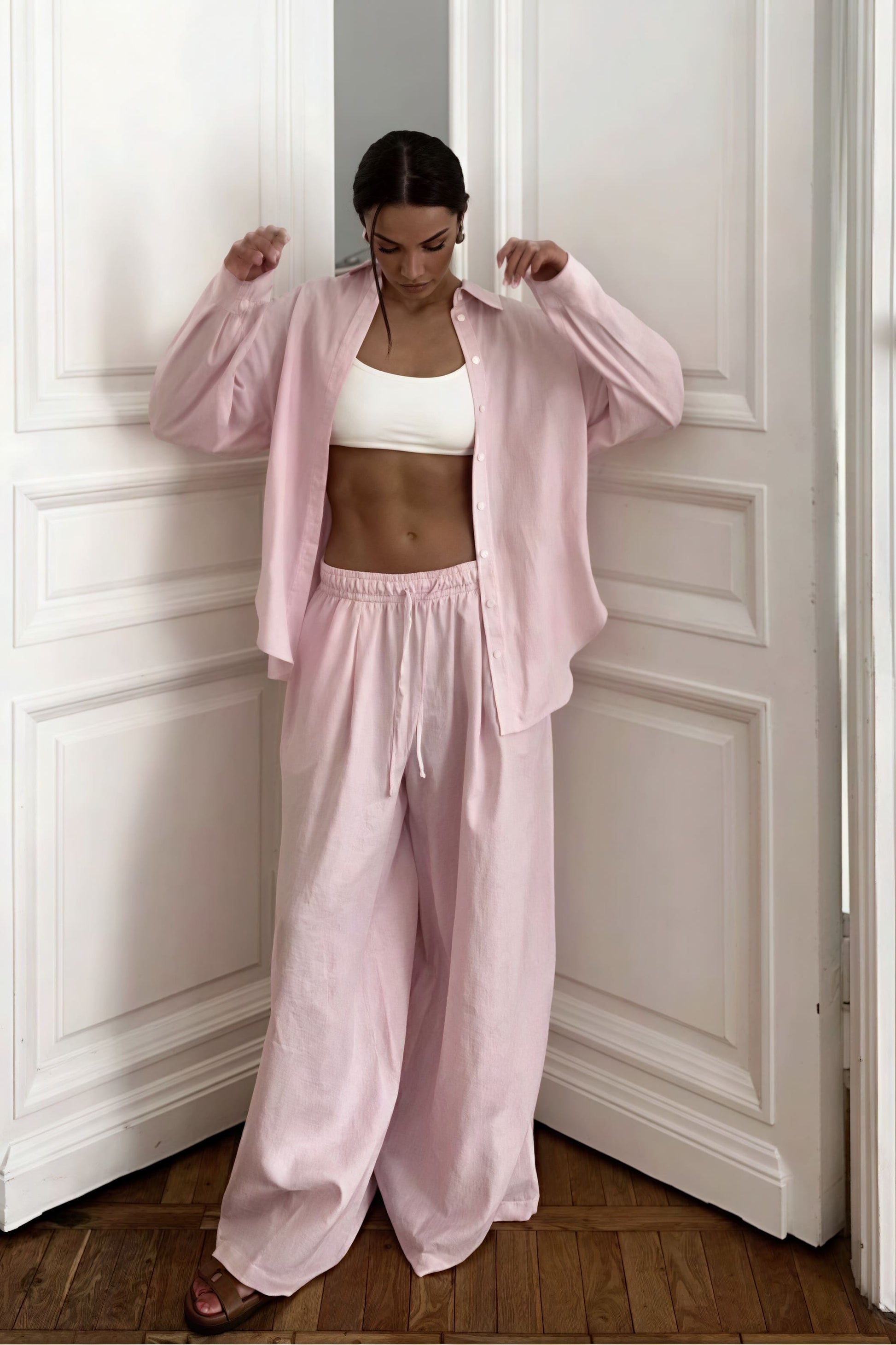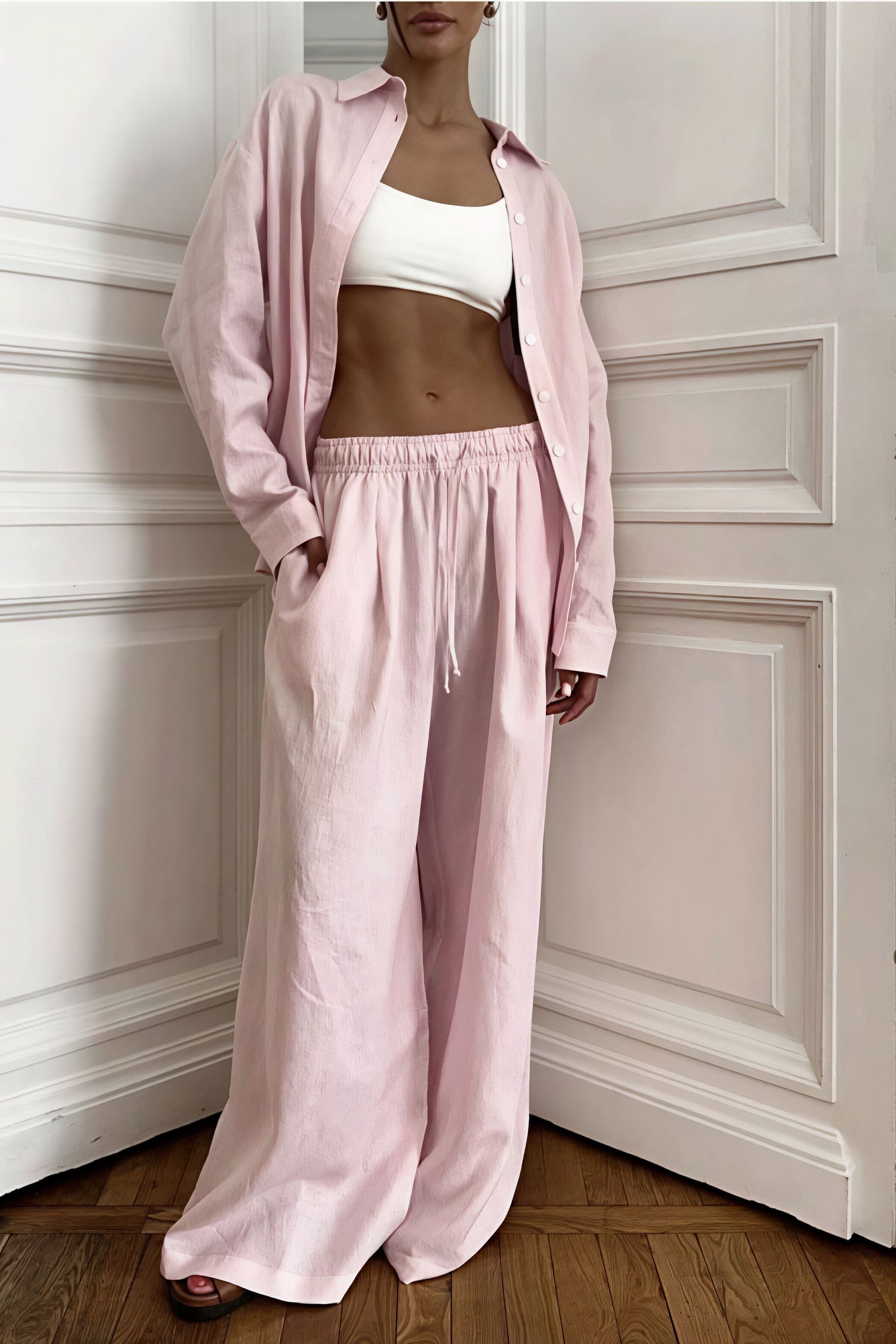 Cotton Loose Long Sleeve Shirt Pants Two Piece Set