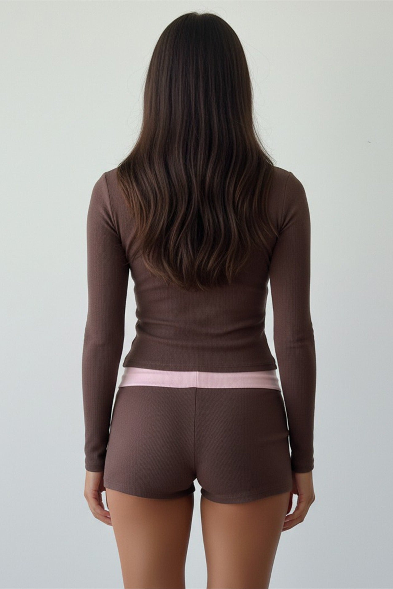 Cross V Neck Contrast Slim Long Sleeve Two Piece Set