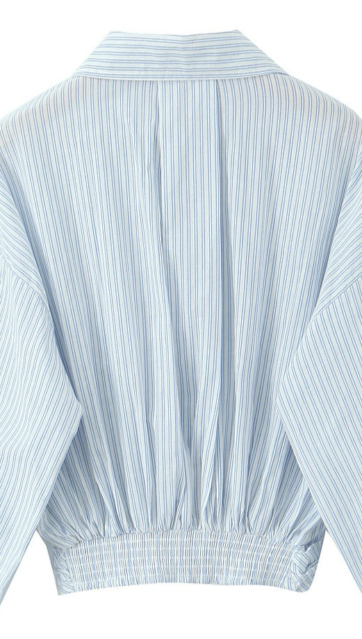 Striped Long Sleeve Shirt High Waist Tie Mini Skirt Set