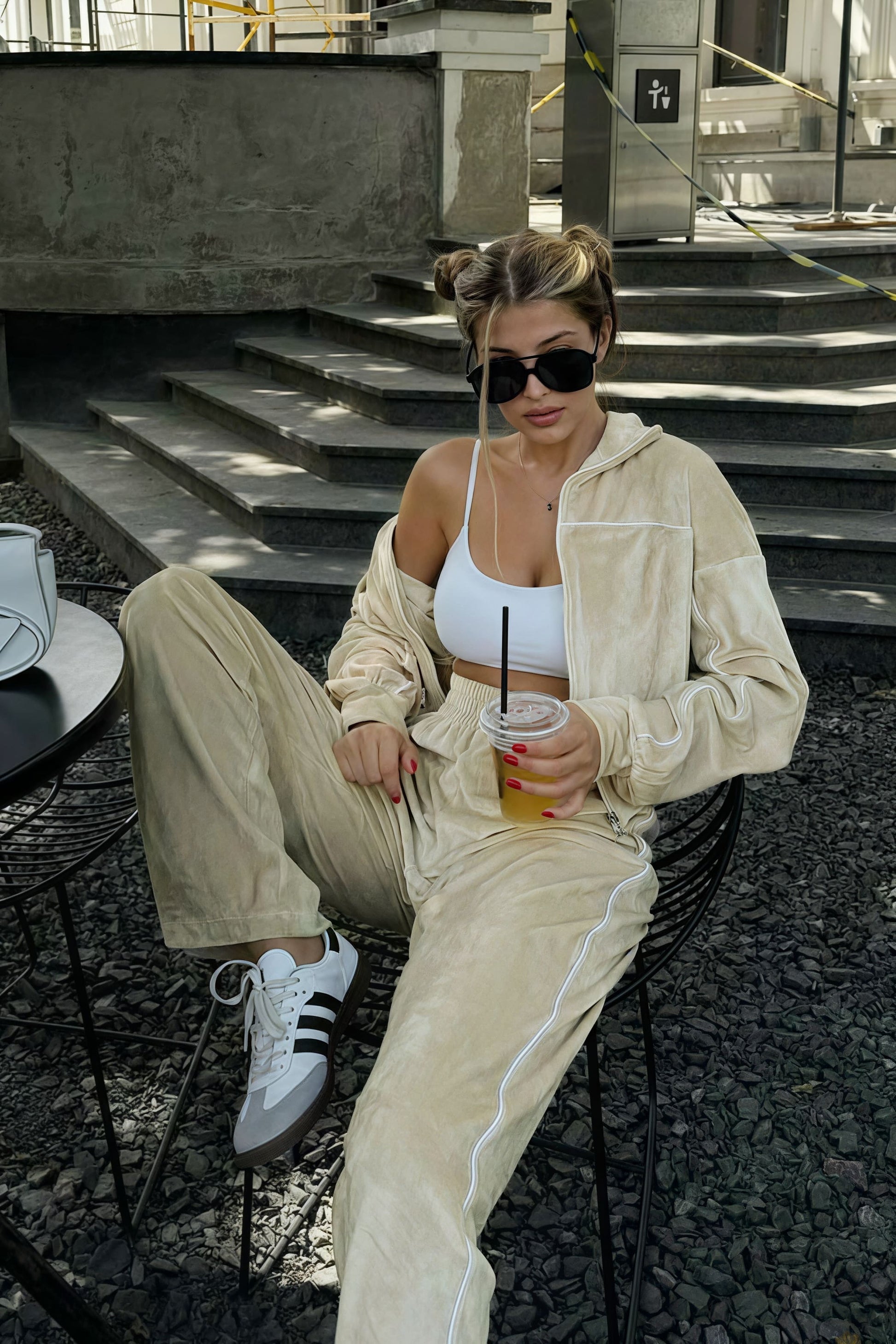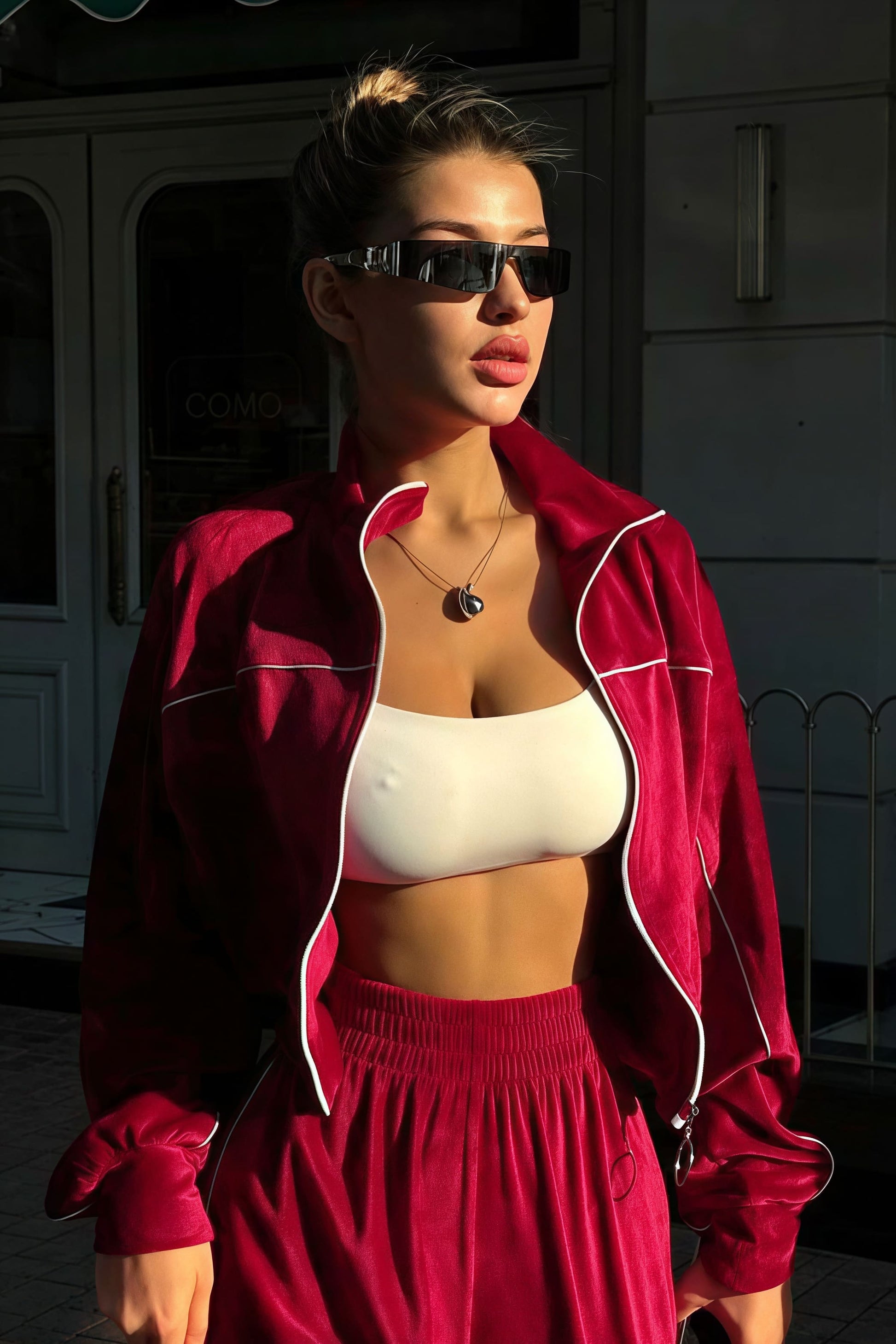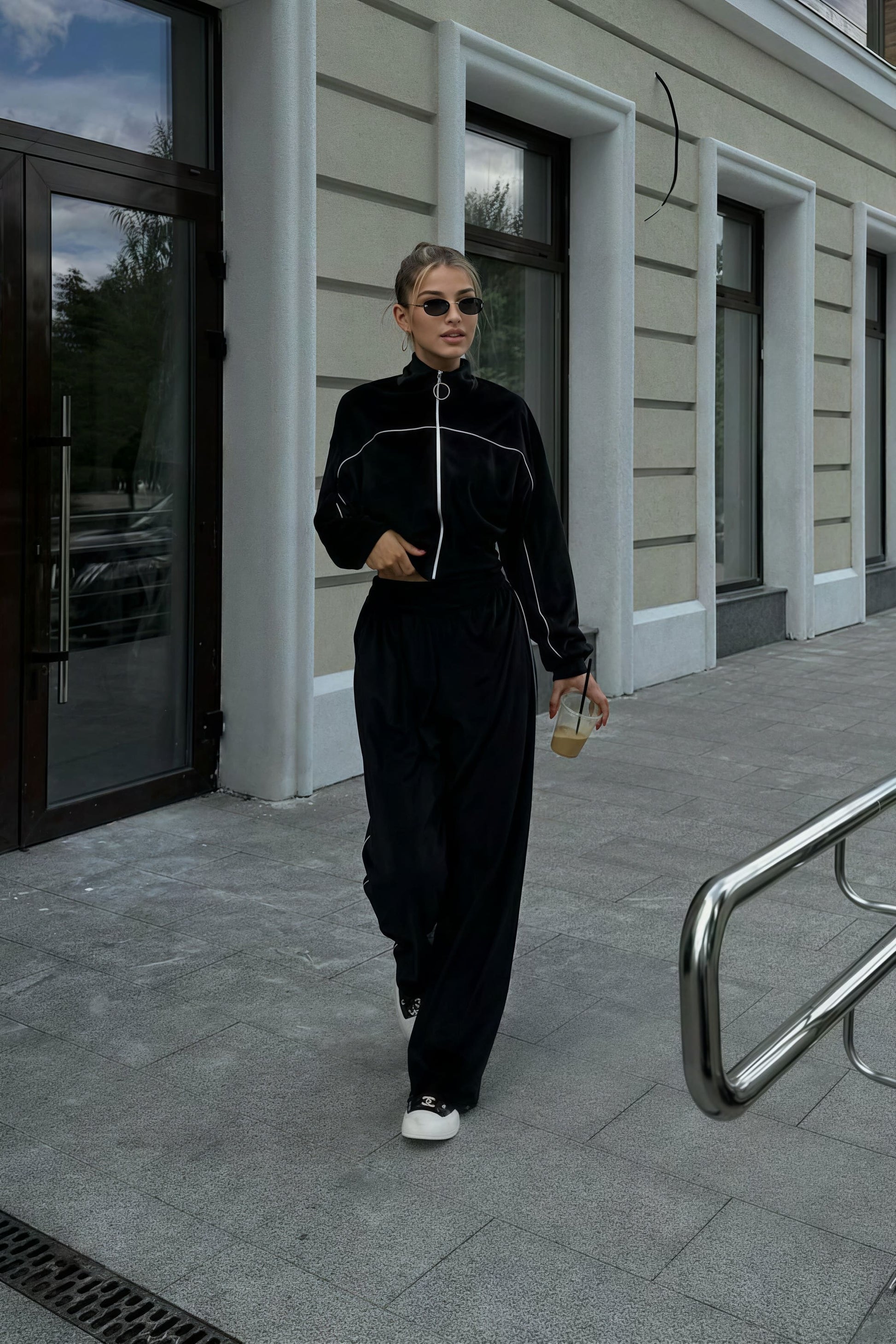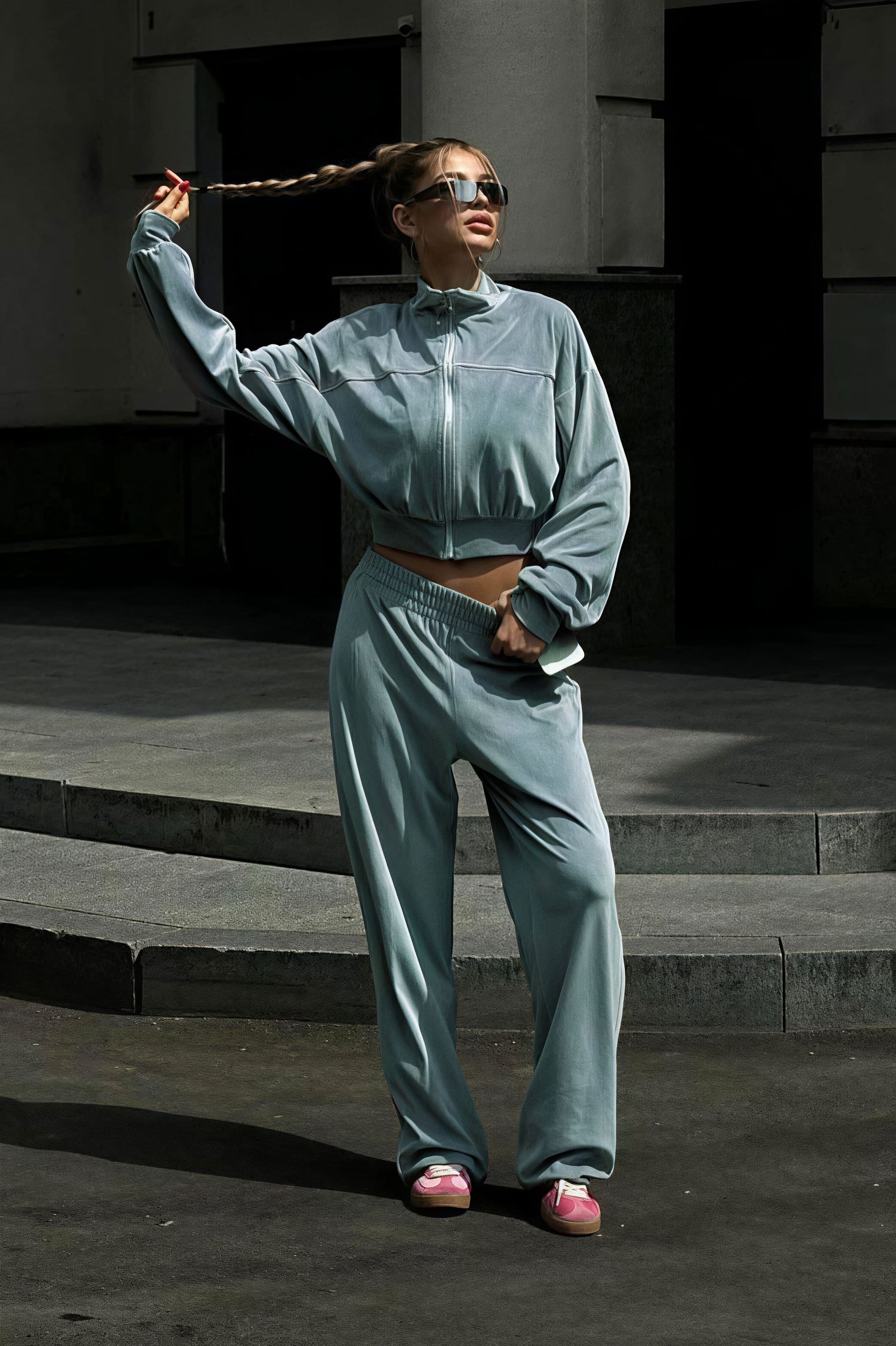 Athletic Velvet Collar Zipper Long Sleeve Two Piece Set