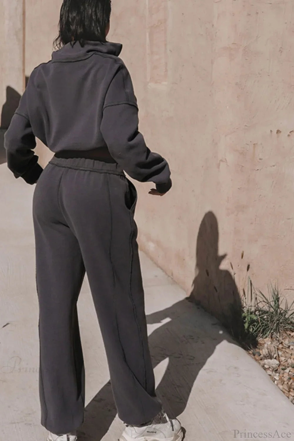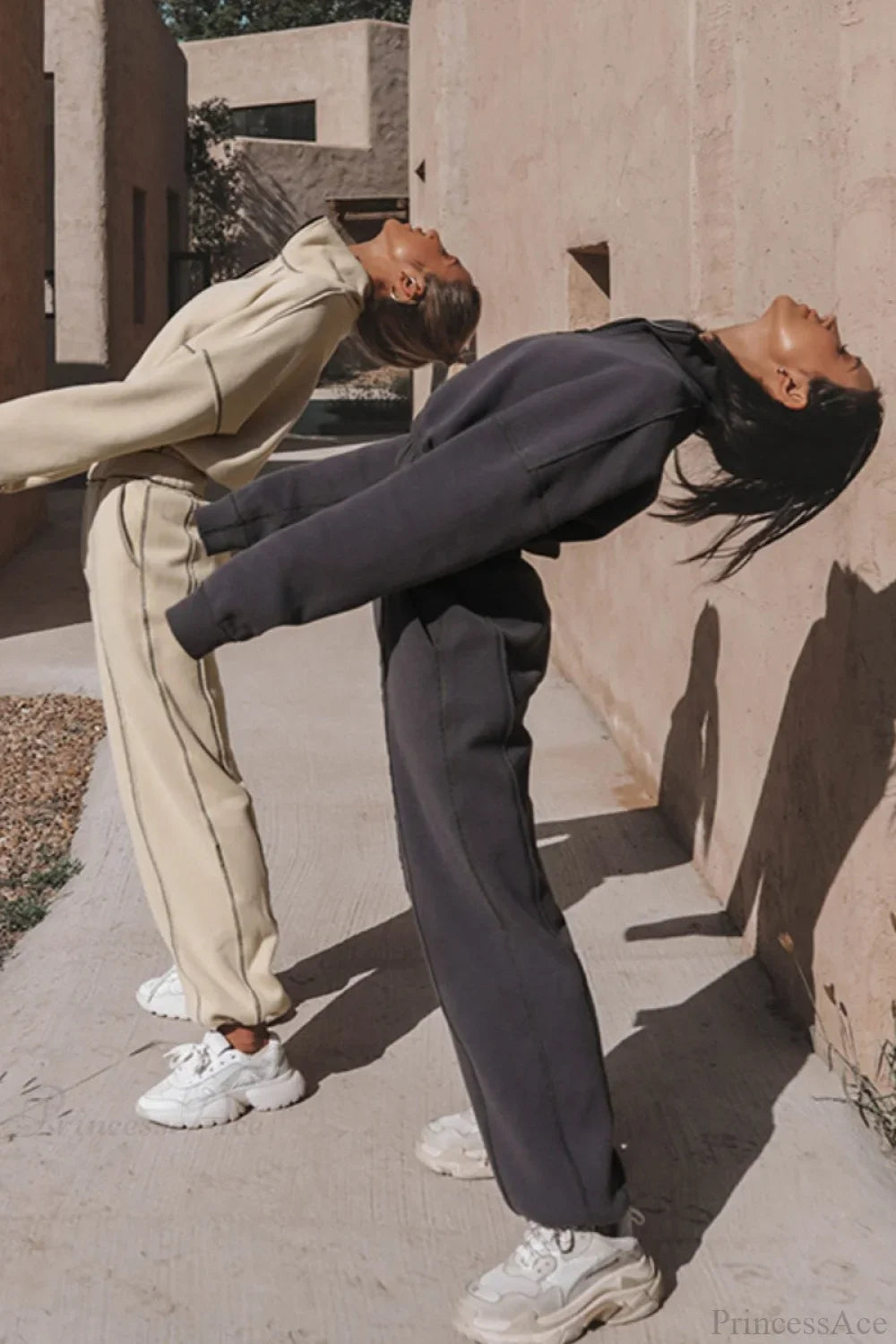 Chic Athleisure Stand Collar Sweatshirt Elastic Jogger Two Piece Set
