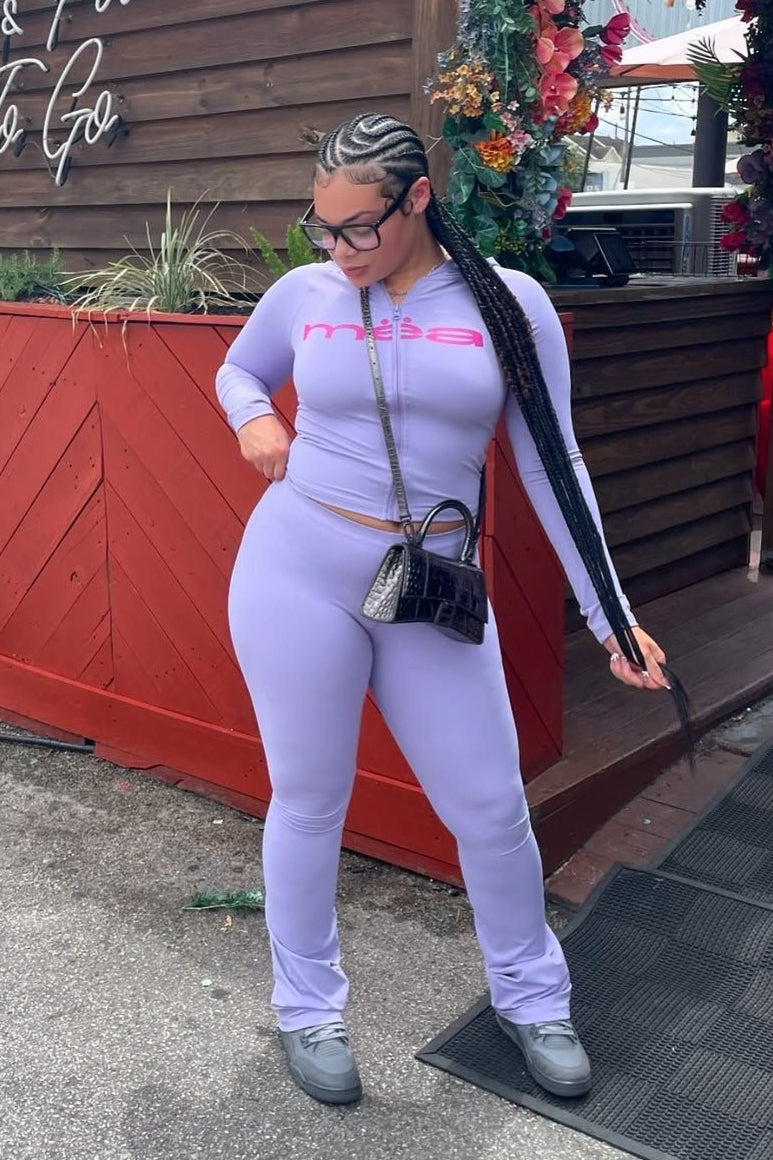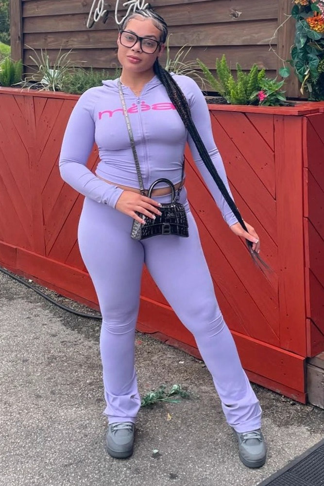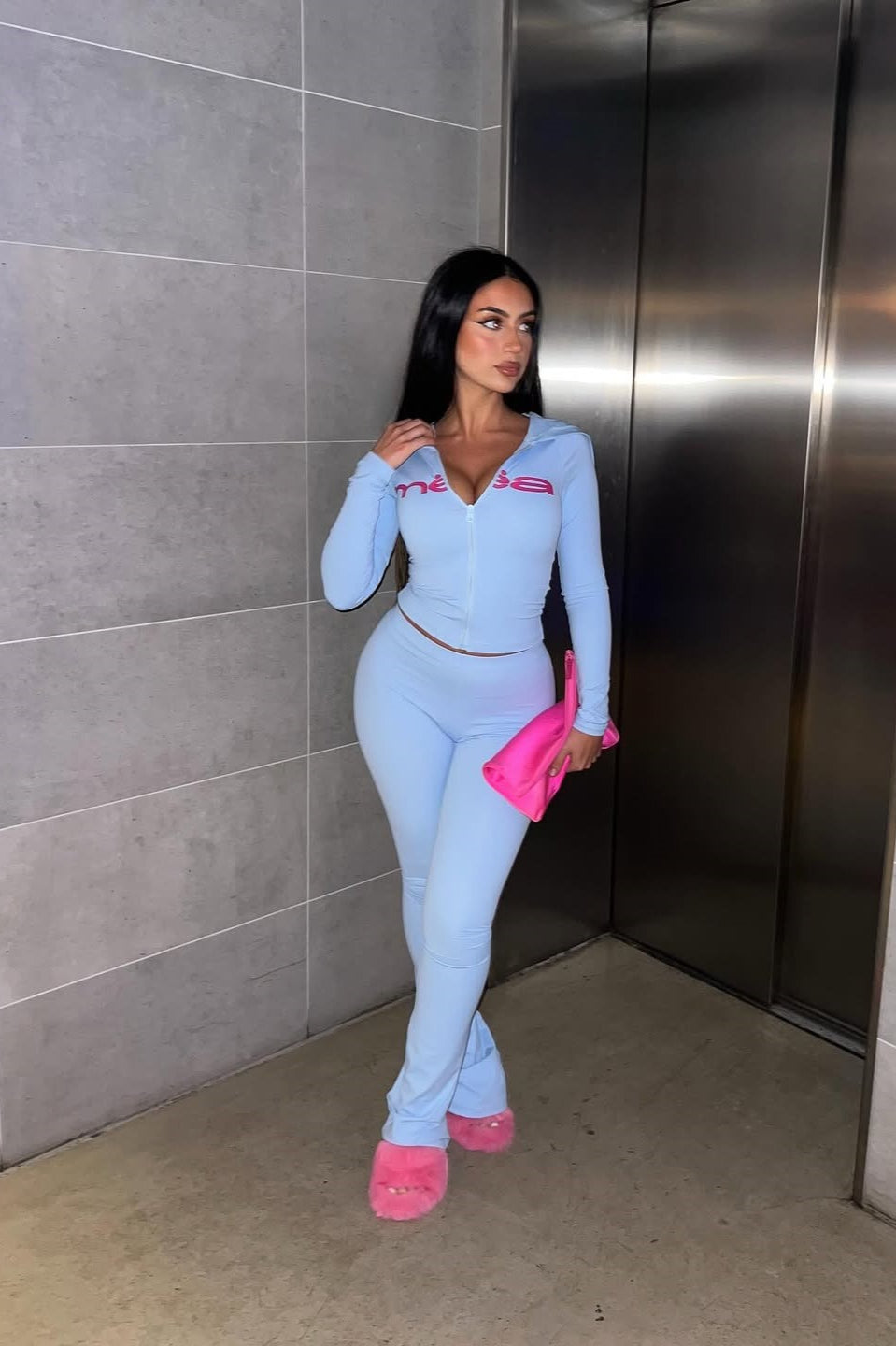Letter Print Crop Hoodie & Skinny Pants Two Piece Set
