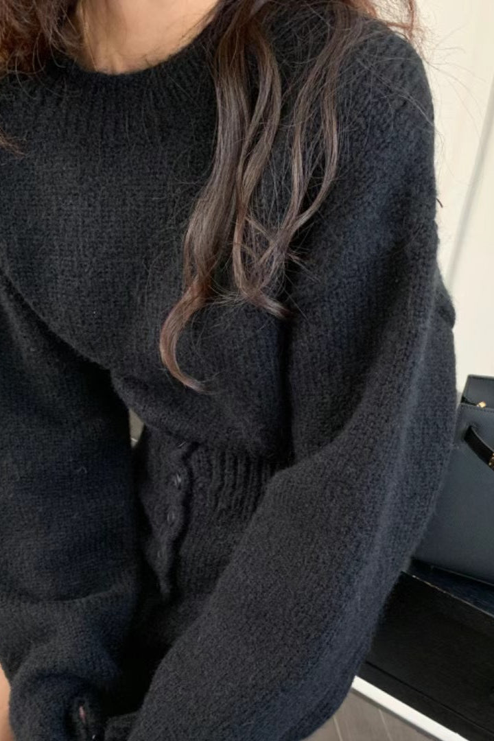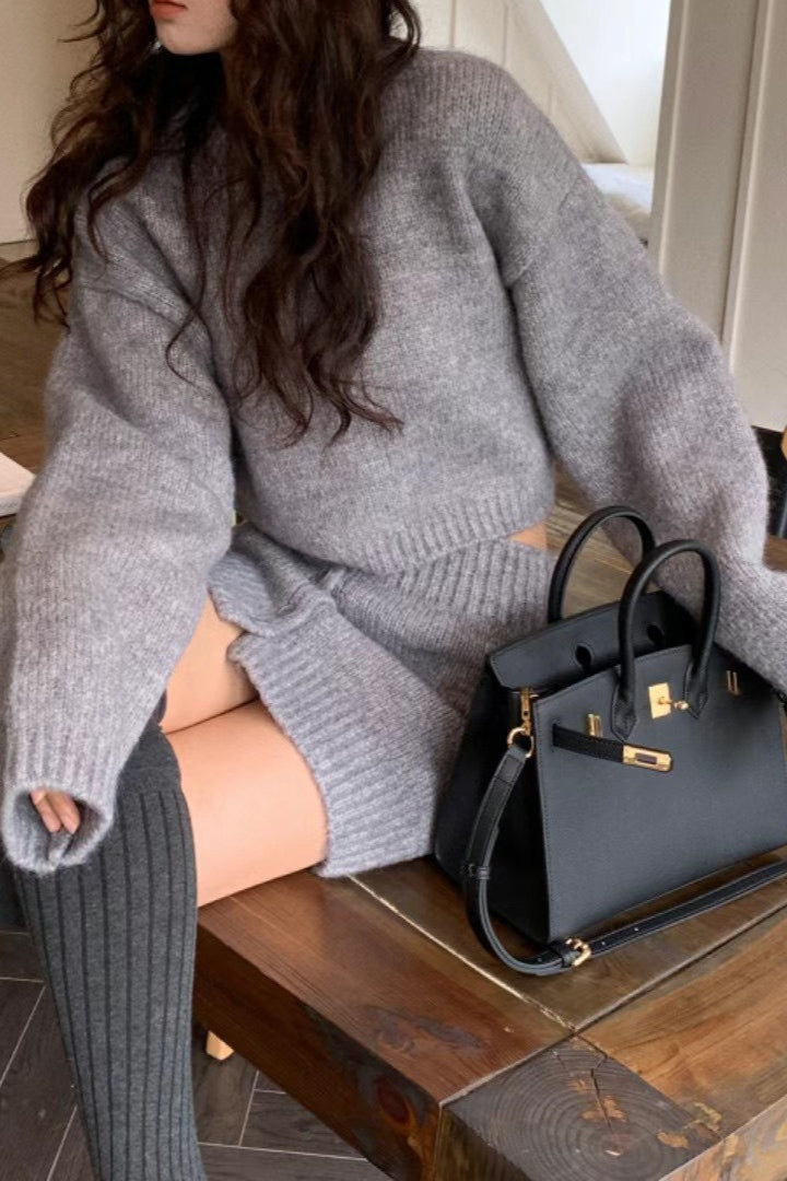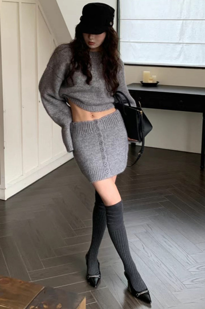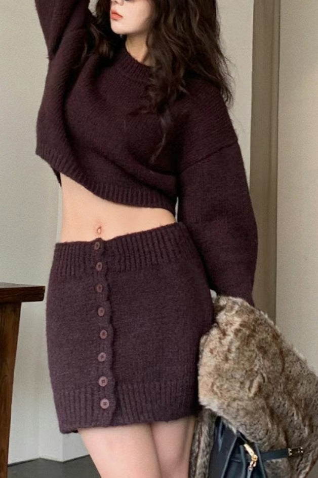 Short Fitted Knit Round Neck Slim Two Piece Set