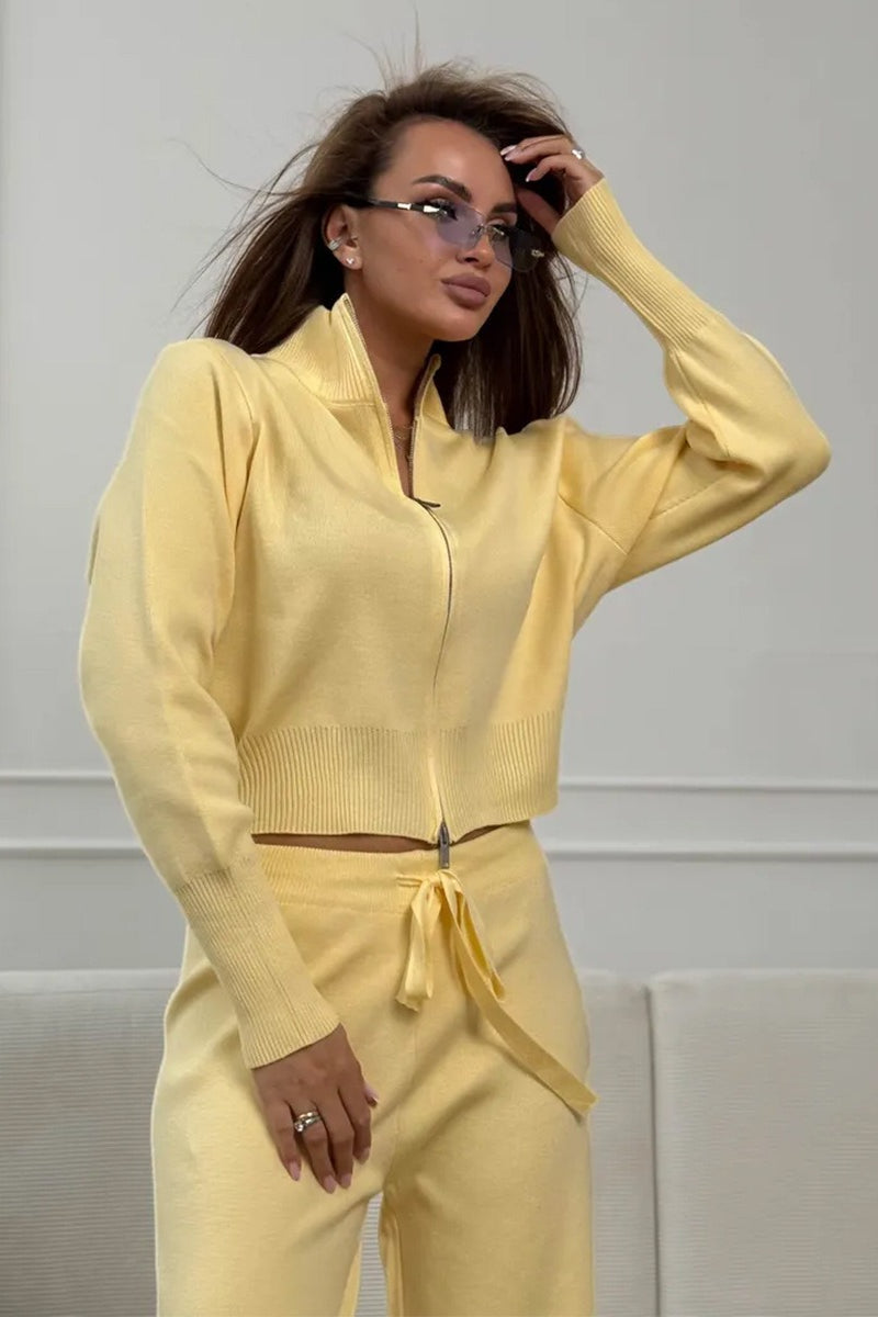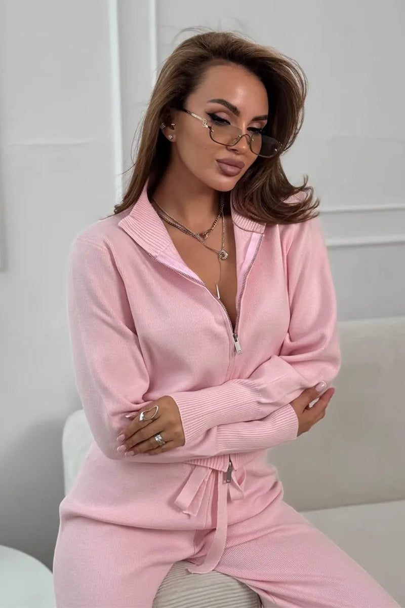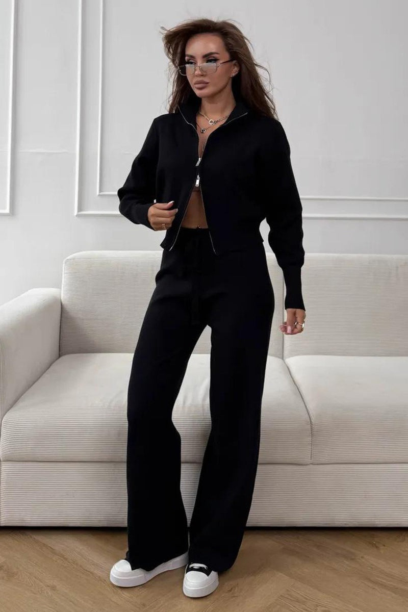 Two-Way Zipper Fitted Knit Commuter Two Piece Set
