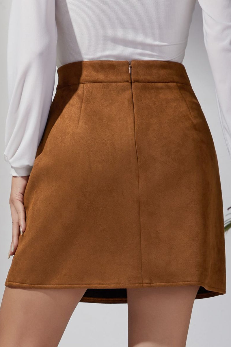 Solid Suede Bodycon Mini Skirt