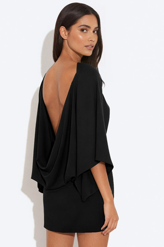Chic Back Deep V Cowl Neck Loose Mini Dress