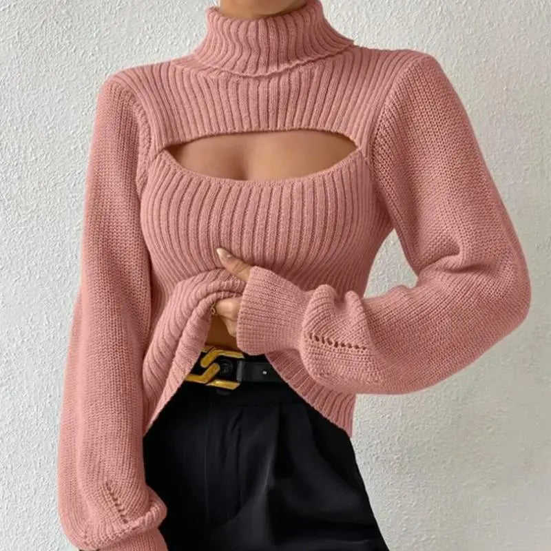 Chest Hollowed-out Turtleneck Sexy Sweater
