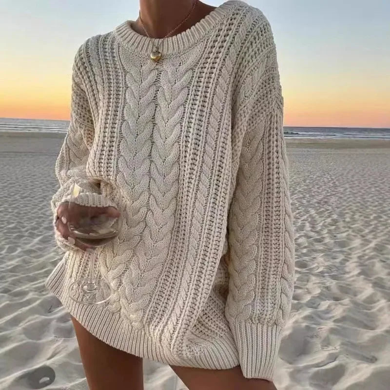 Off-Shoulder Solid Long Sleeve Knitted Sweater