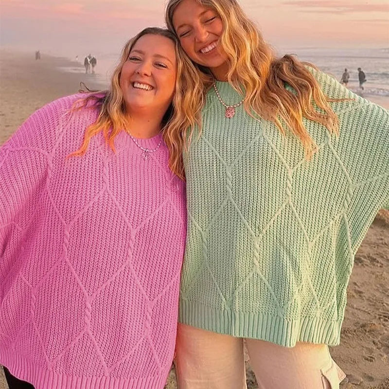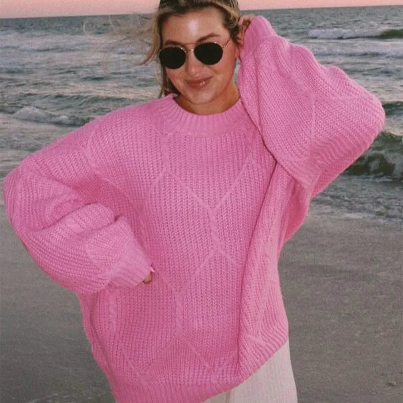 Solid O-Neck Ribbed Long Sleeve Sweater
