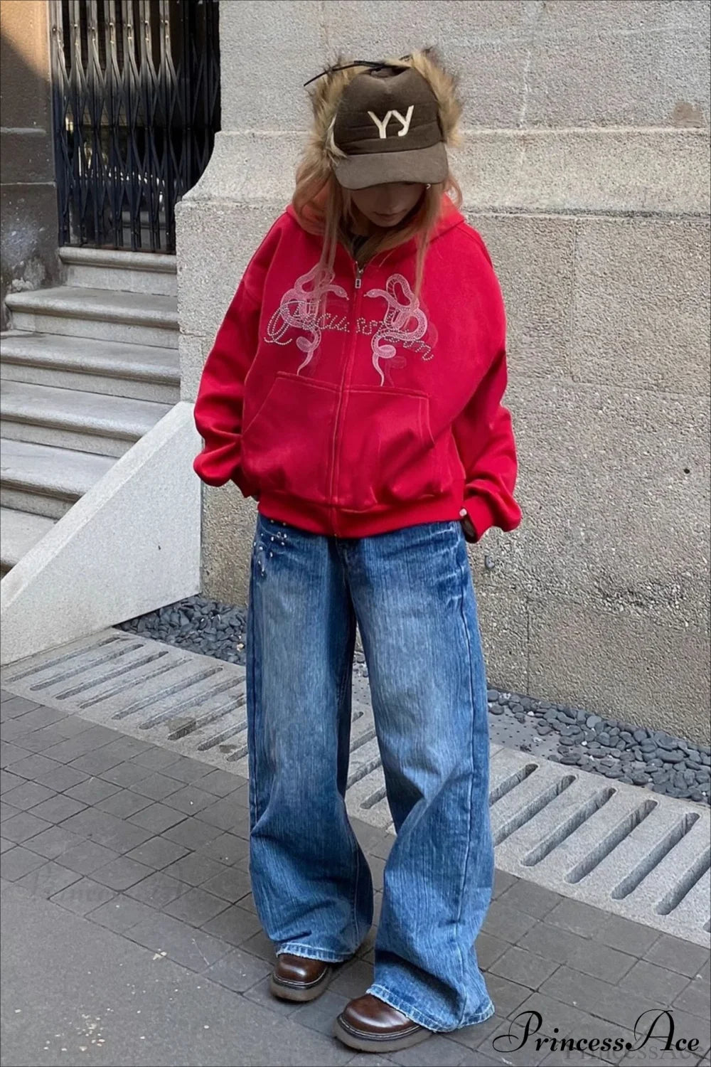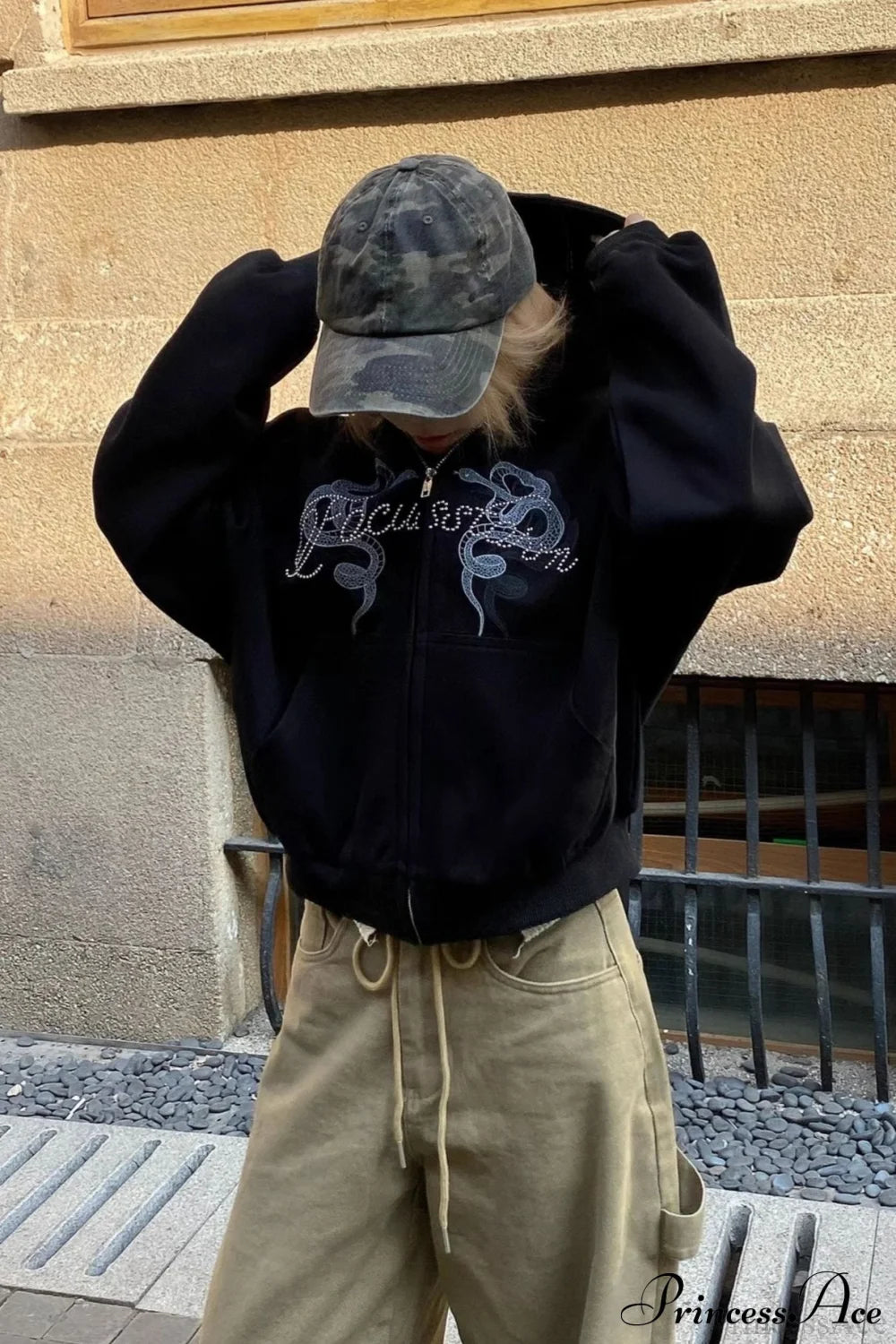 Snake Print Rhinestone Zip Up Cropped Hoodie